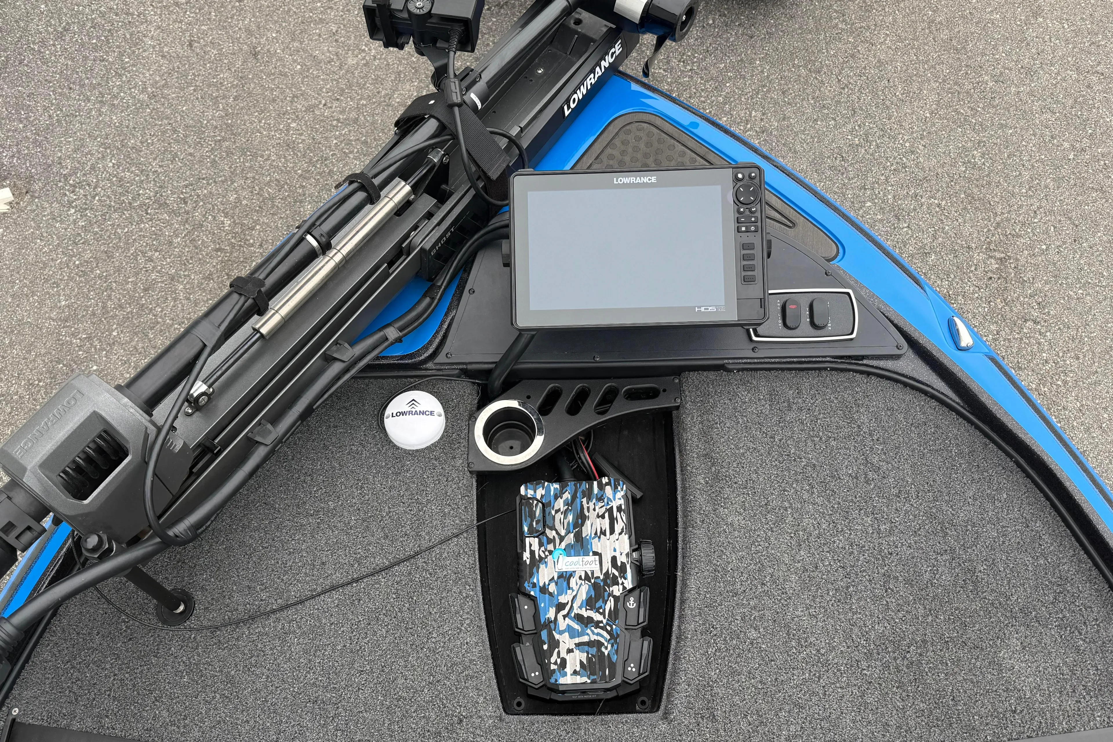 Lowrance HDS12 on the bow and console