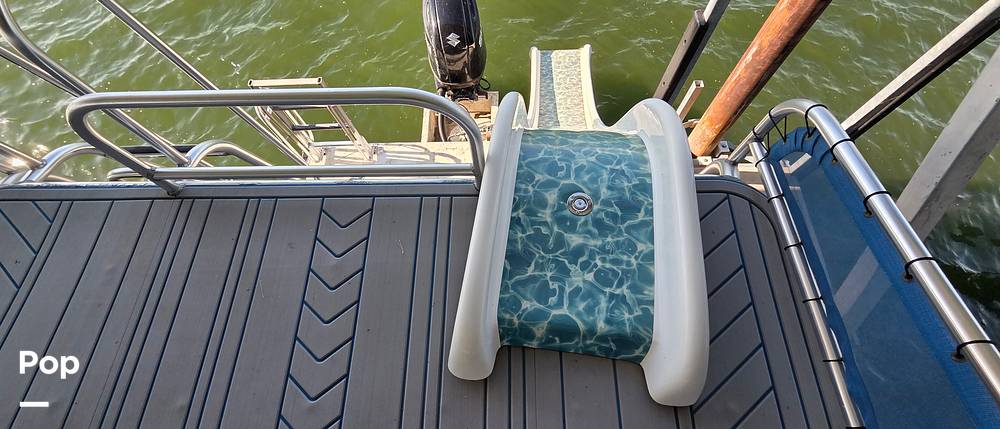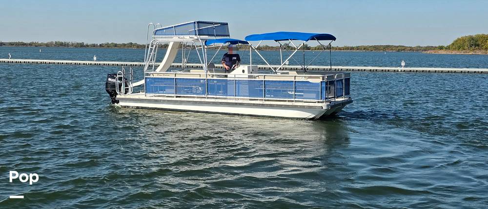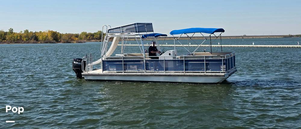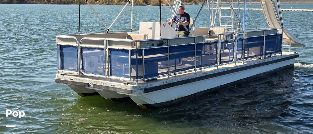 2022 A&M custom made Double Decker boat on tritoon hulls. Top deck features a slide! 150 horsepower Suzuki motor!