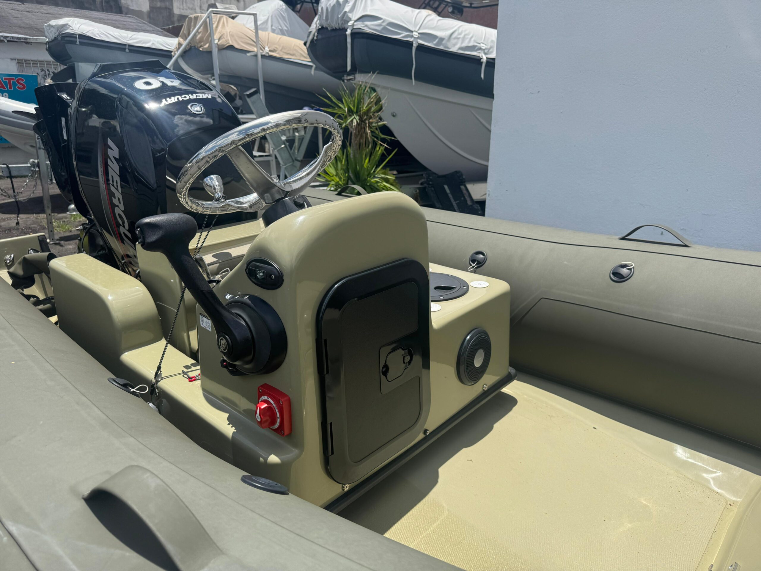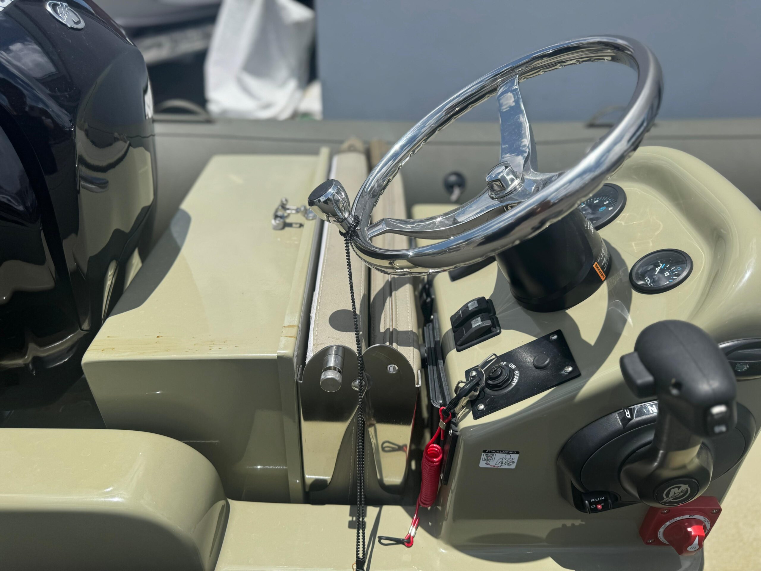 The Cruiser 380 model is equipped with a dual seat for the driver and passenger alongside, a driver's console with an additional integrated seat, and a bow storage compartment for the gas tank and built-in fuel line.