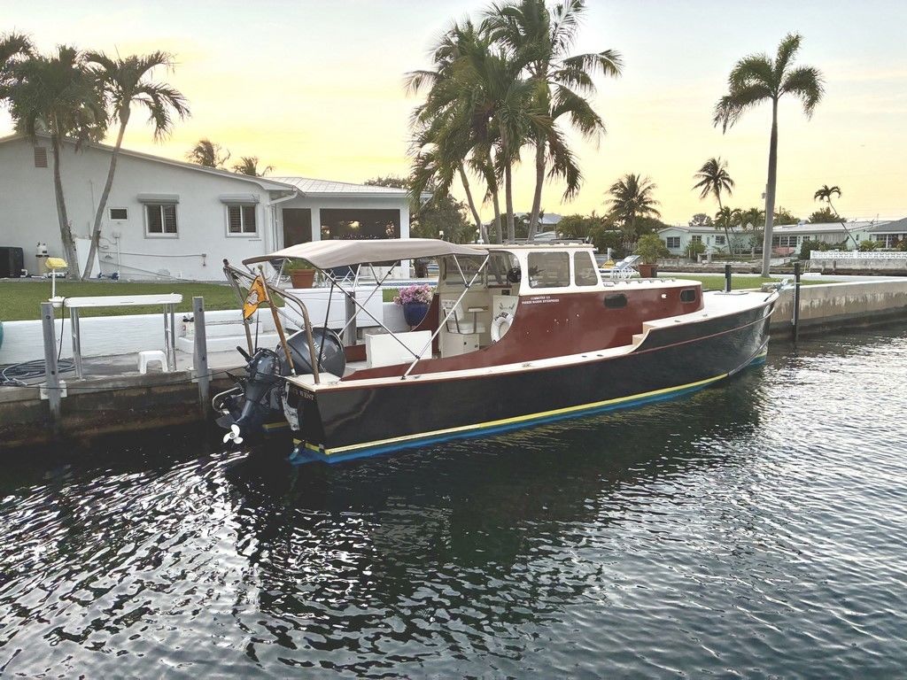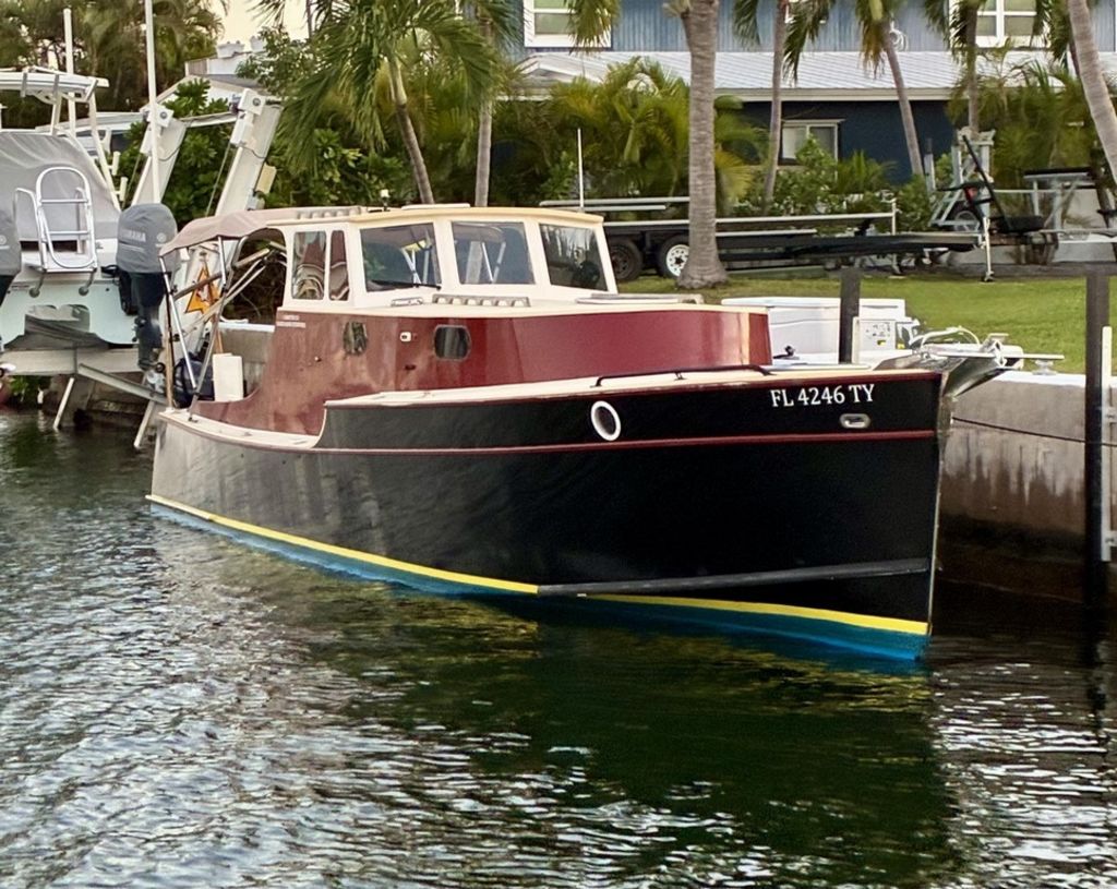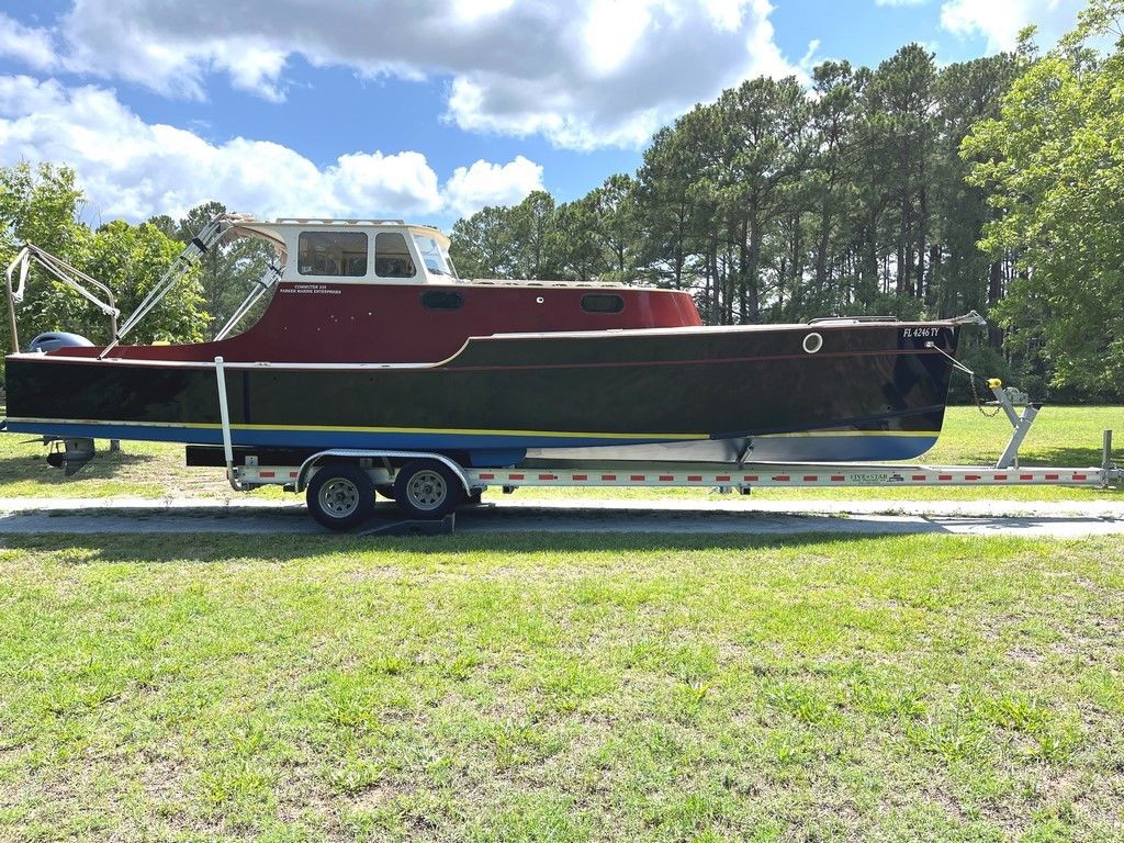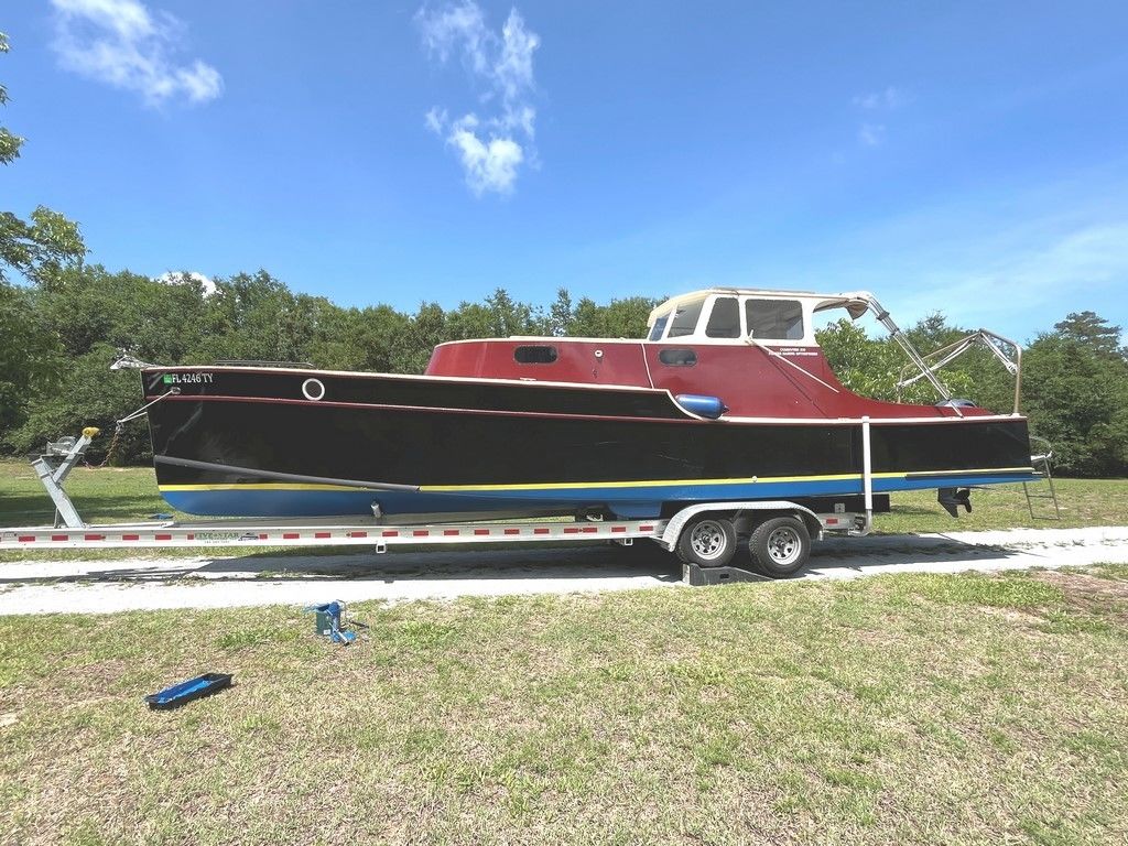There are twin bilge keels port and starboard for minimal turning radius and to resist side-drift at low-speed. Exterior surfaces are finished painted using lmron and Awlgrip paints