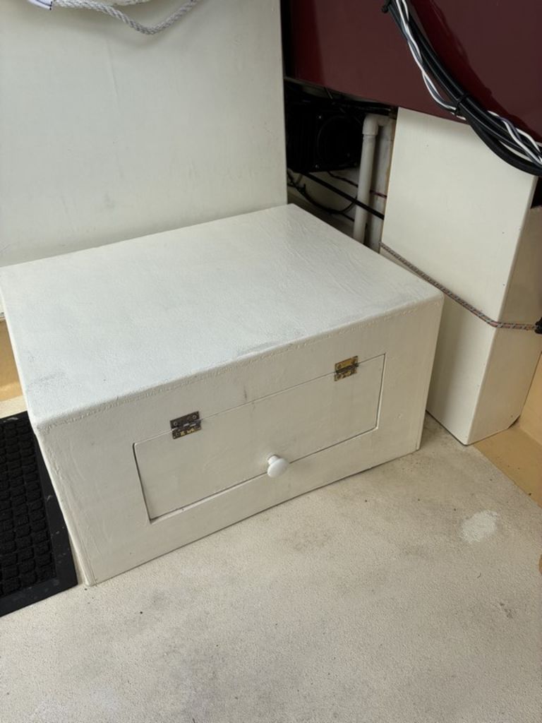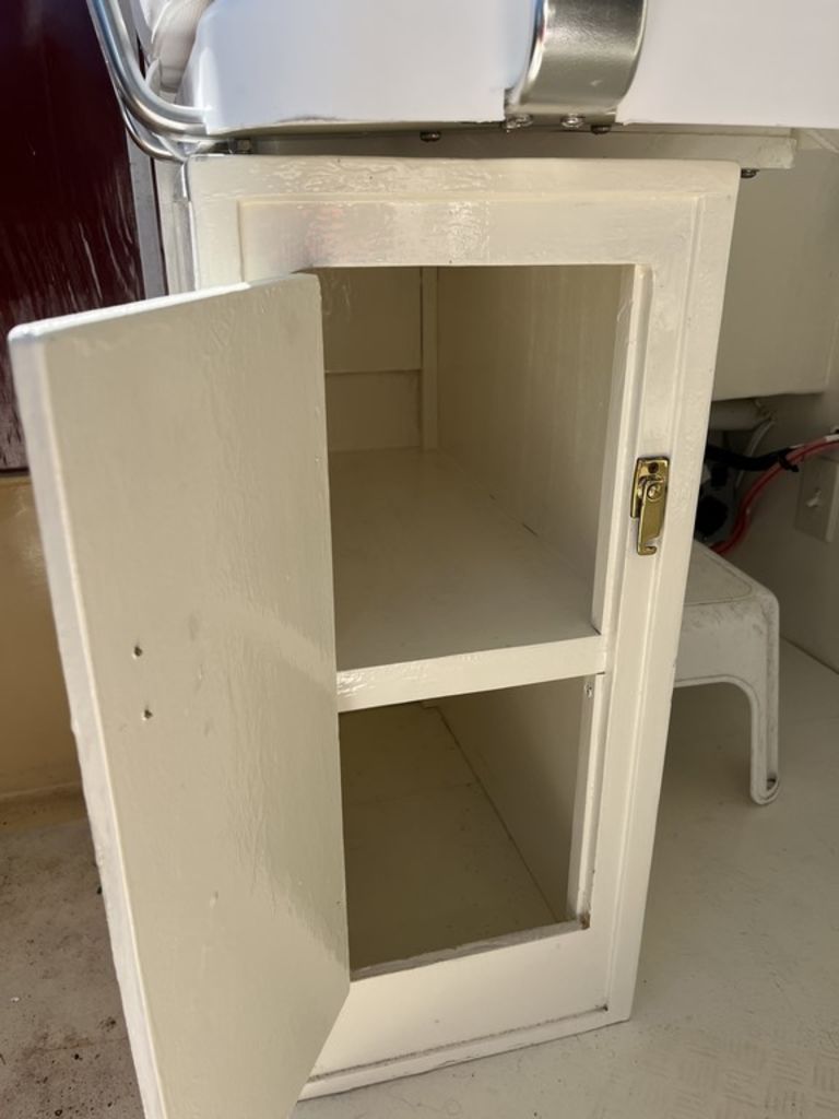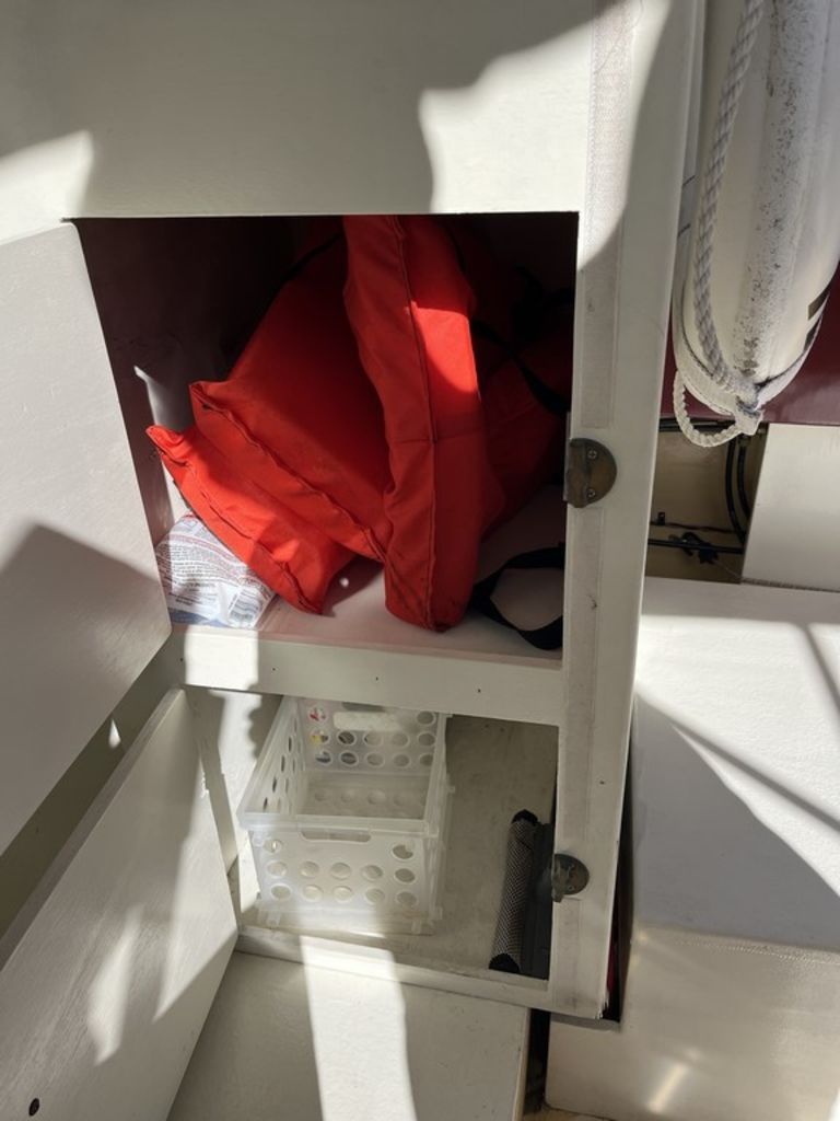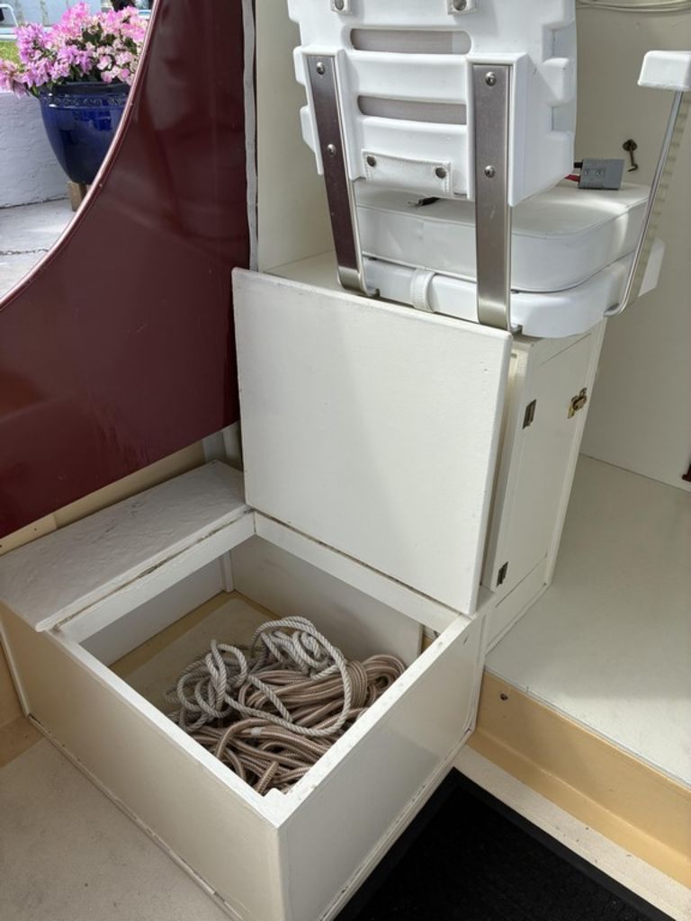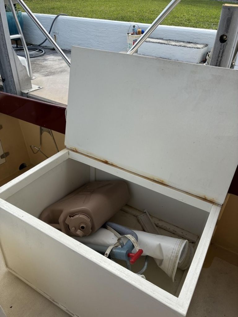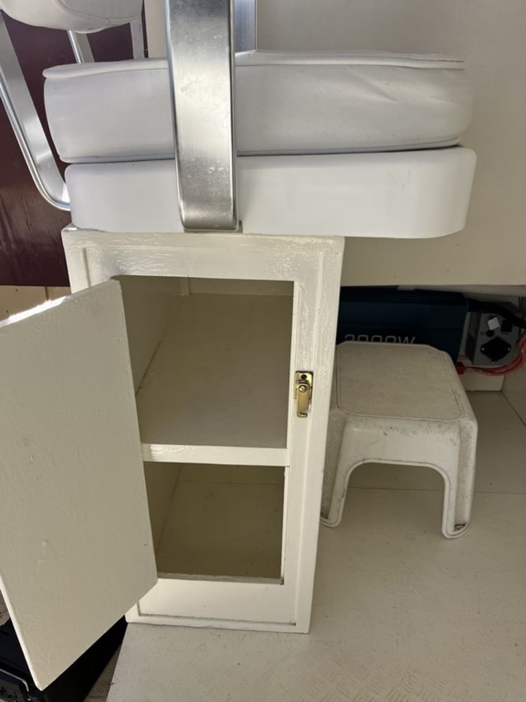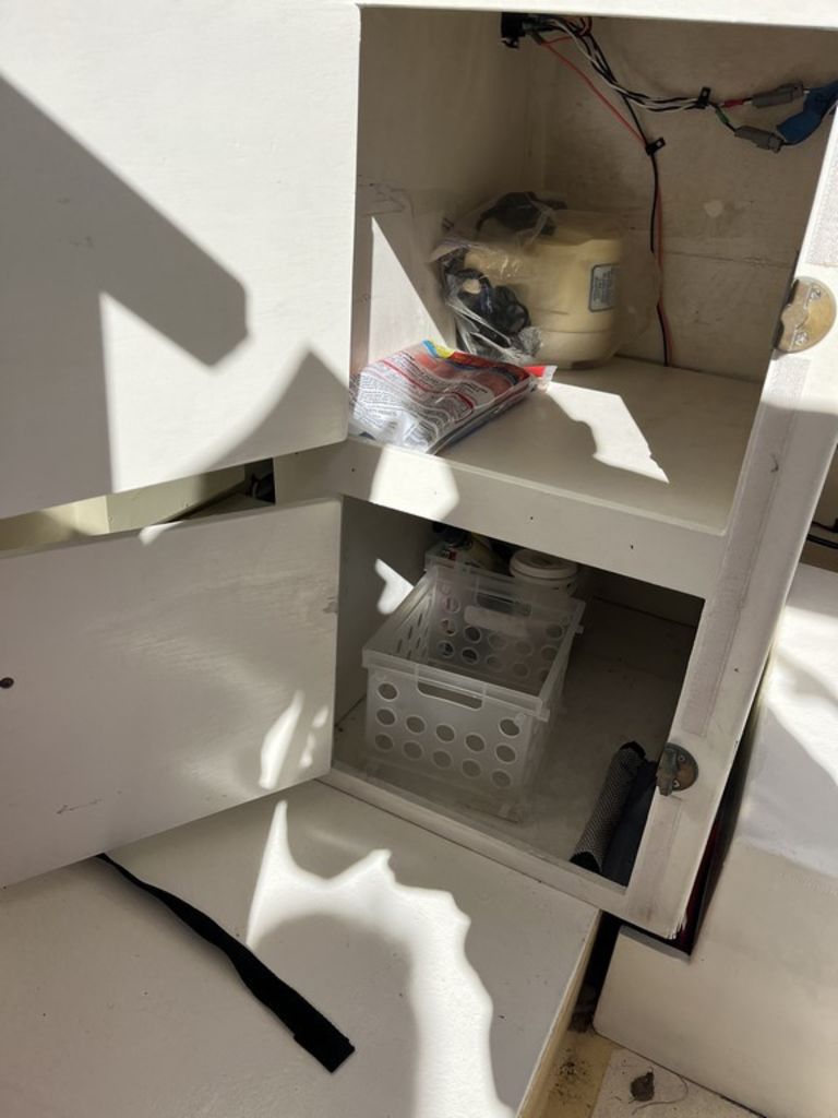 Tool and parts lockers under the helm station, three removable tool-box/storage lockers.