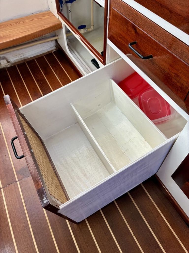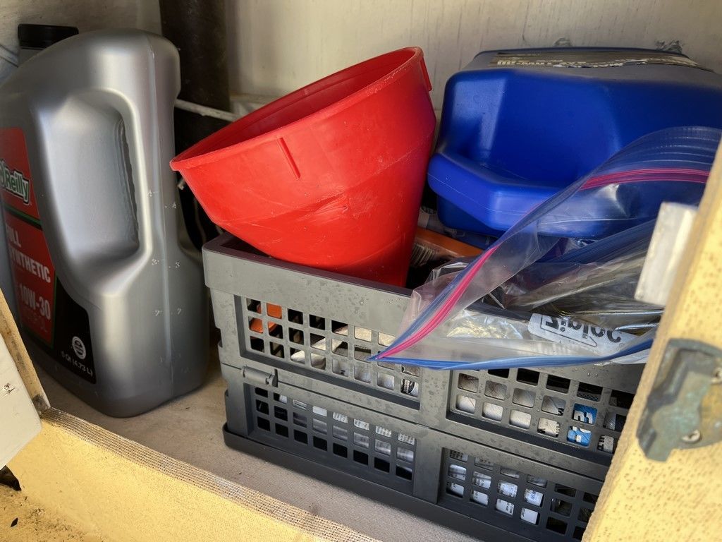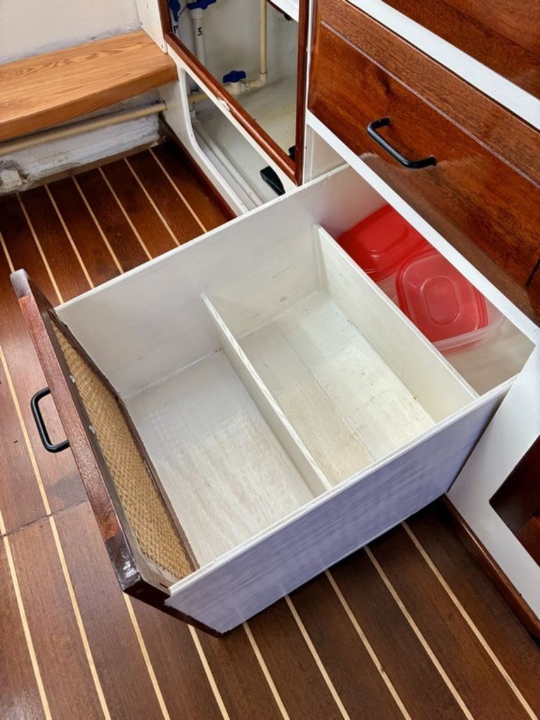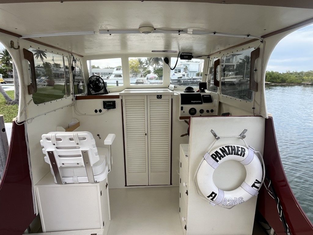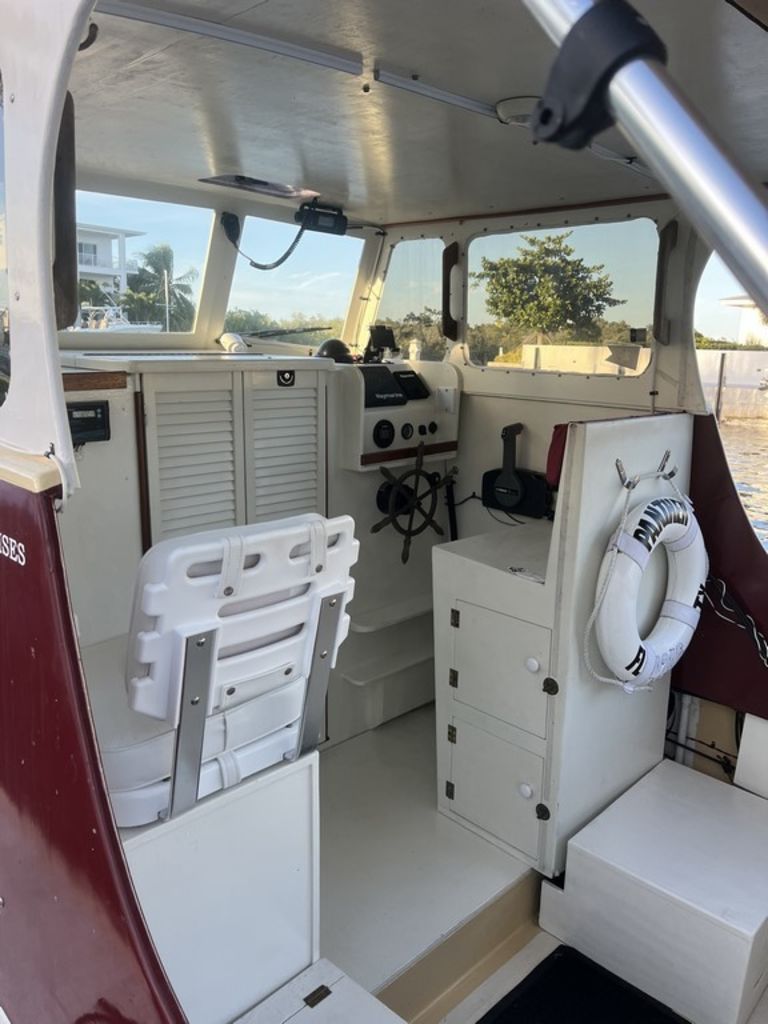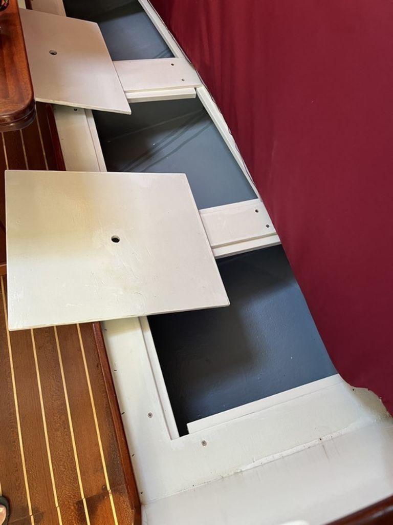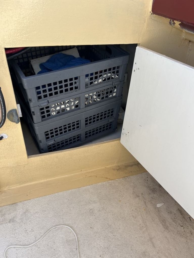 Tool and parts lockers under the helm station, three removable tool-box/storage lockers.