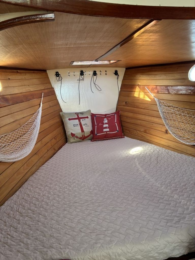 Hull, coach roof and pilot house top are foam-core for heat and sound insulation. There is hull insulation between topsides planking and ceiling planking.