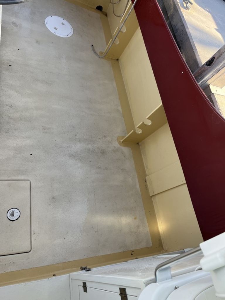 Well-deck forward with removable access to the forepeak locker. Two bronze (2) hawses (port and starboard).