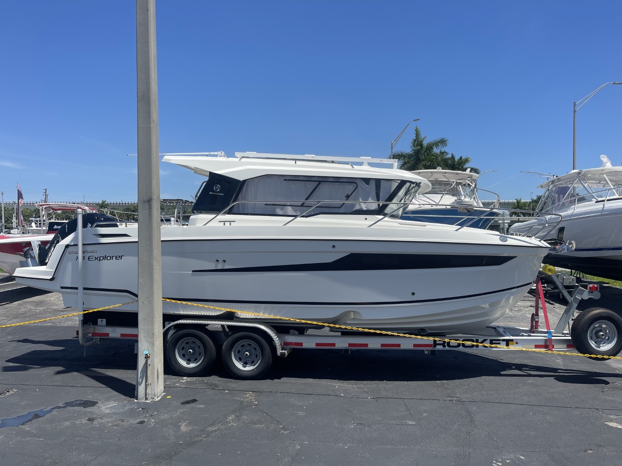 El 790 Explorer es una embarcación que mide 27,7 pies de largo total y 9,42 pies de manga total. Tiene un calado de 1,48 pies sin motor. La embarcación tiene una capacidad de tanque de agua negra de 10,6 galones, una capacidad de tanque de combustible de 60,7 galones y una capacidad de tanque de agua dulce de 26,5 galones.