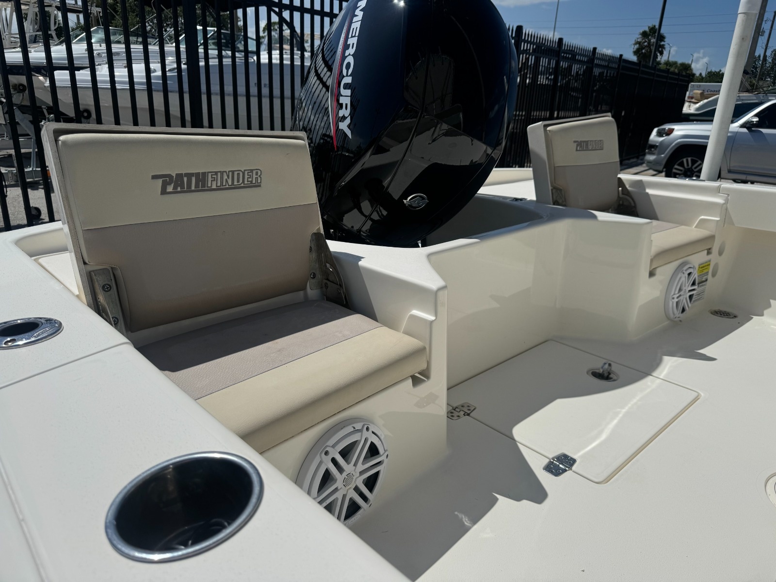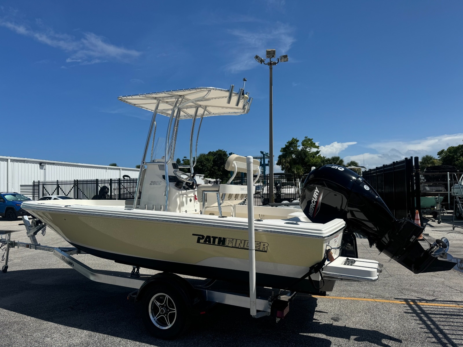 Designed in every way to maximize opportunity and minimize hassle, the Pathfinder 2005 TRS fits big bay boat performance in a manageable package. A higher exterior freeboard, a roomy cockpit, and 16 degrees of deadrise make running and fishing in big water safe and comfortable. Add to that raised casting decks and plenty of storage, including undergunwale rod racks and in-deck boxes big enough for 5-gallon buckets, and this boat will out fish its size every trip. Integrated aft jump seats, fore and aft coolers totaling over 120 quarts, and a forward entry console with tackle storage finish the lengthy list of standards. Feature packed, the Pathfinder 2005 TRS puts all the water has to offer within easy reach. This boat has been re-powered with a New 150HP Mercury motor and includes a 3-Year Warranty with Mercury Marine!