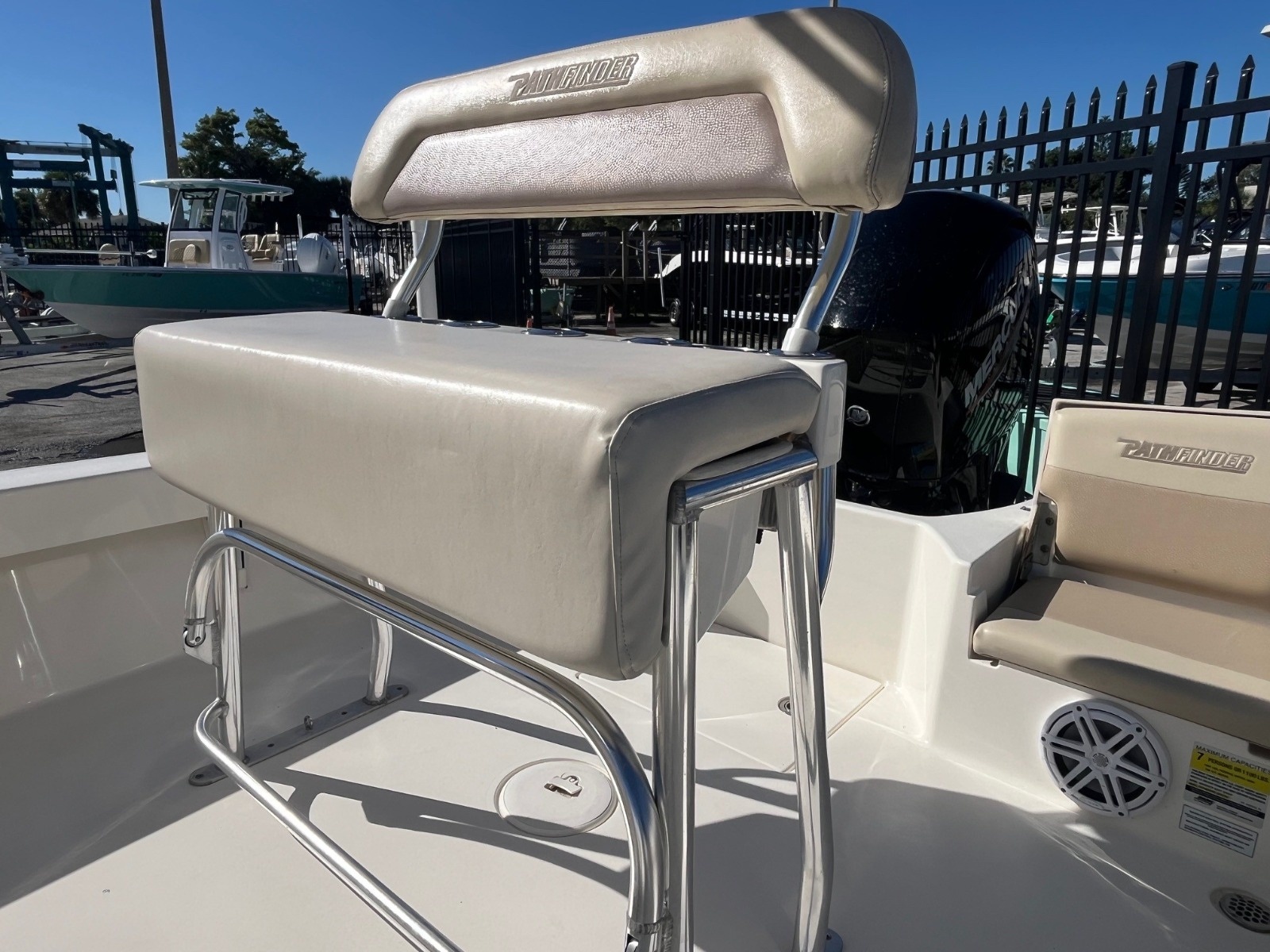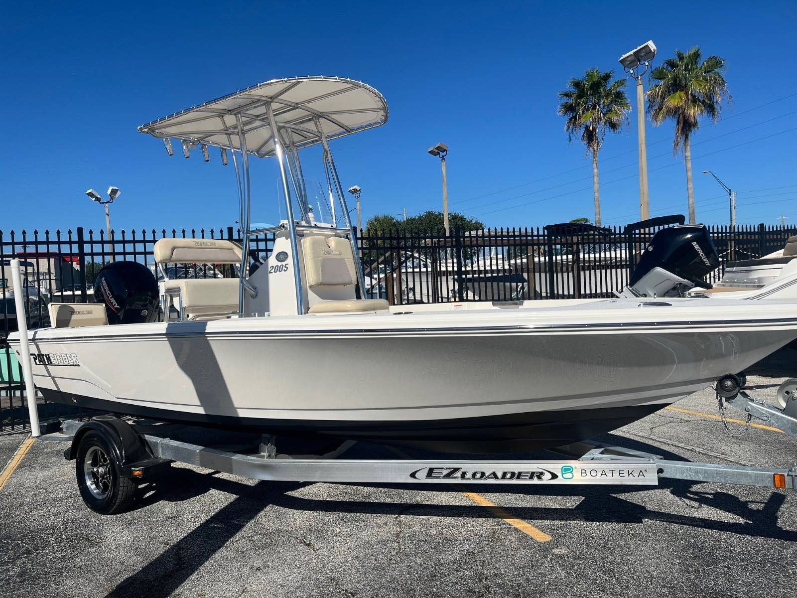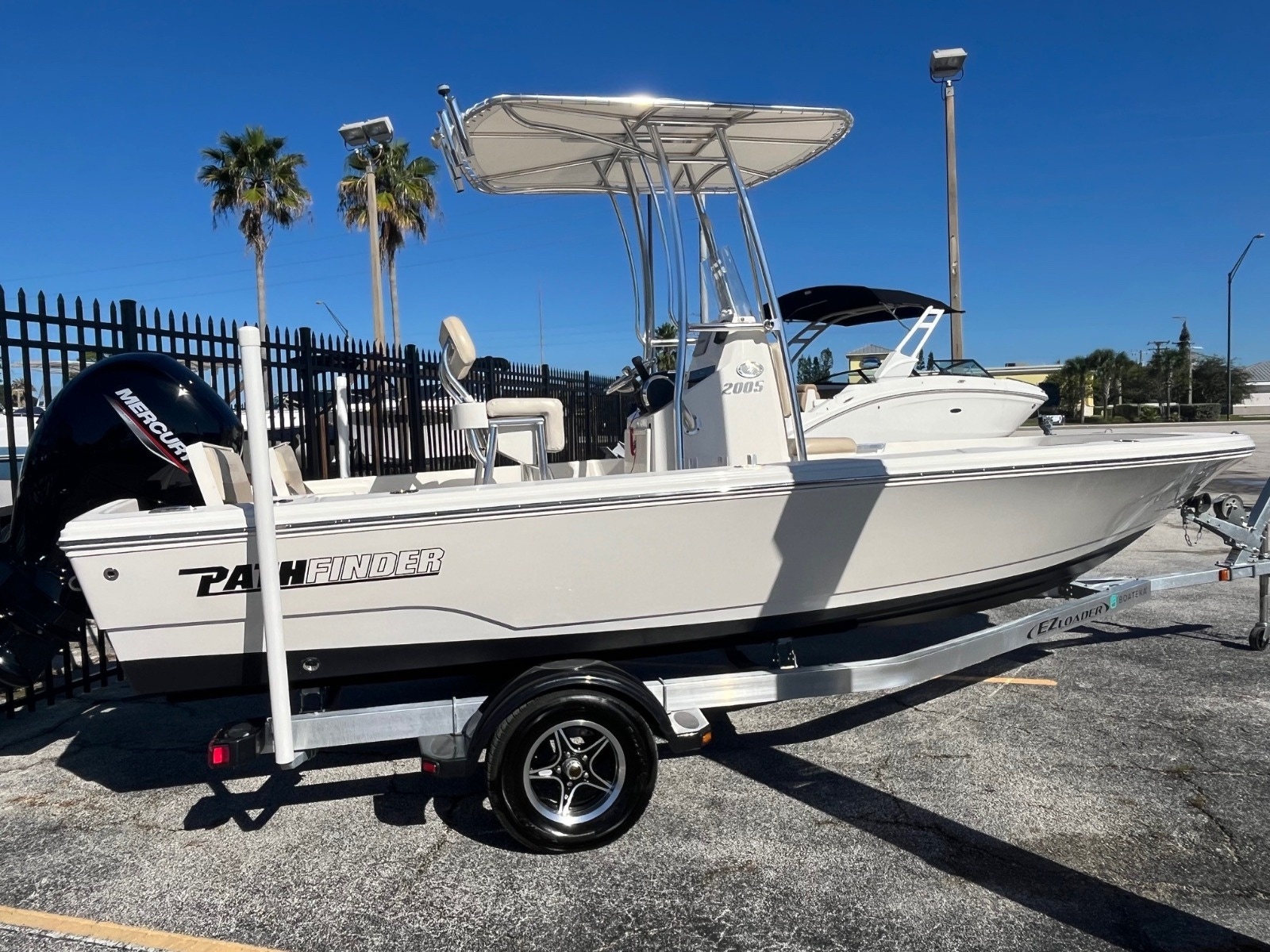 Designed in every way to maximize opportunity and minimize hassle, the Pathfinder 2005 TRS fits big bay boat performance in a manageable package. A higher exterior freeboard, a roomy cockpit, and 16 degrees of deadrise make running and fishing in big water safe and comfortable. Add to that raised casting decks and plenty of storage, including undergunwale rod racks and in-deck boxes big enough for 5-gallon buckets, and this boat will out fish its size every trip. Integrated aft jump seats, fore and aft coolers totaling over 120 quarts, and a forward entry console with tackle storage finish the lengthy list of standards. The Pathfinder 2005 TRS puts all the water has to offer within easy reach. This boat is paired with a new 150HP Mercury motor and includes a 3-Year Factory Warranty!