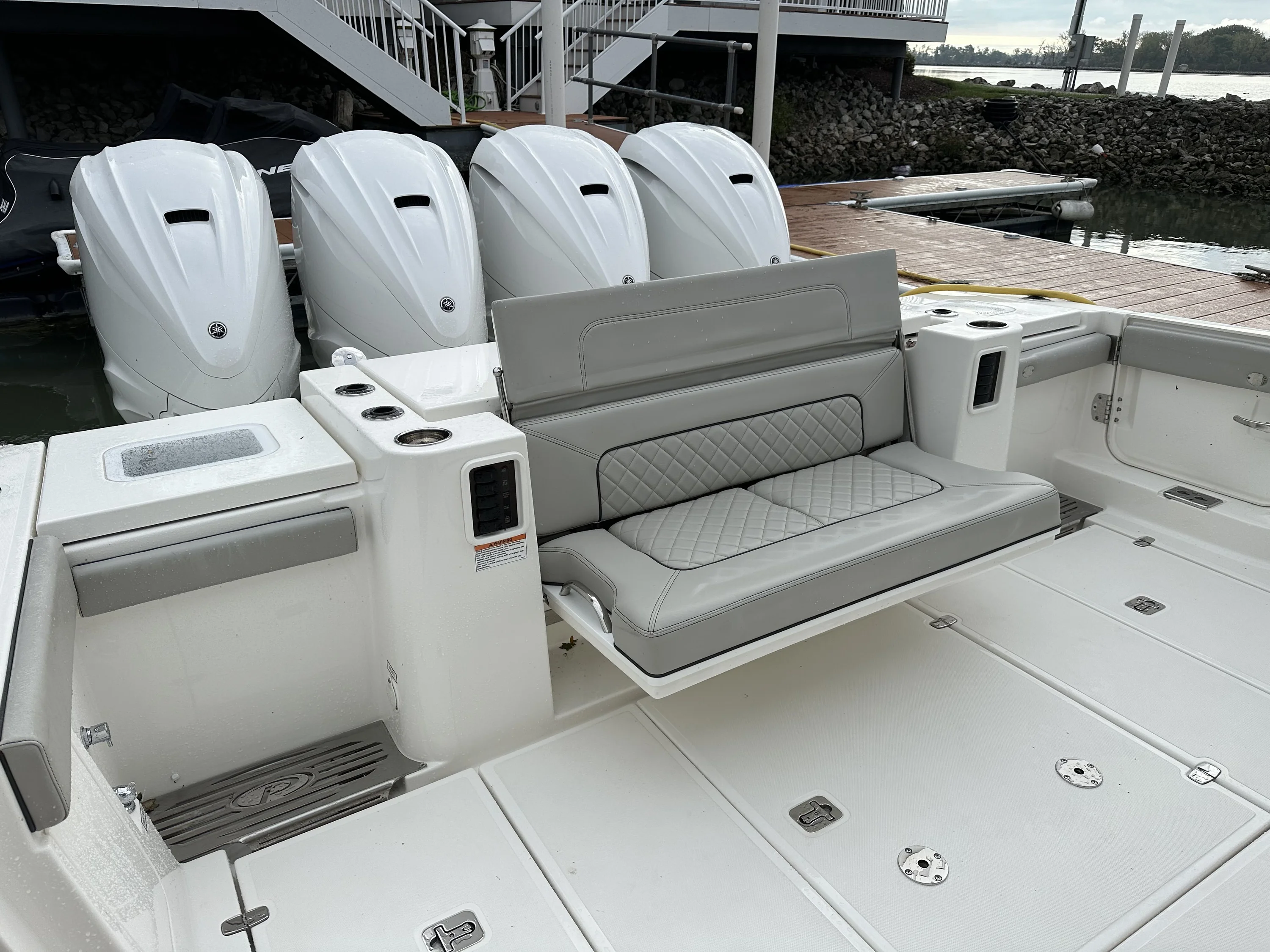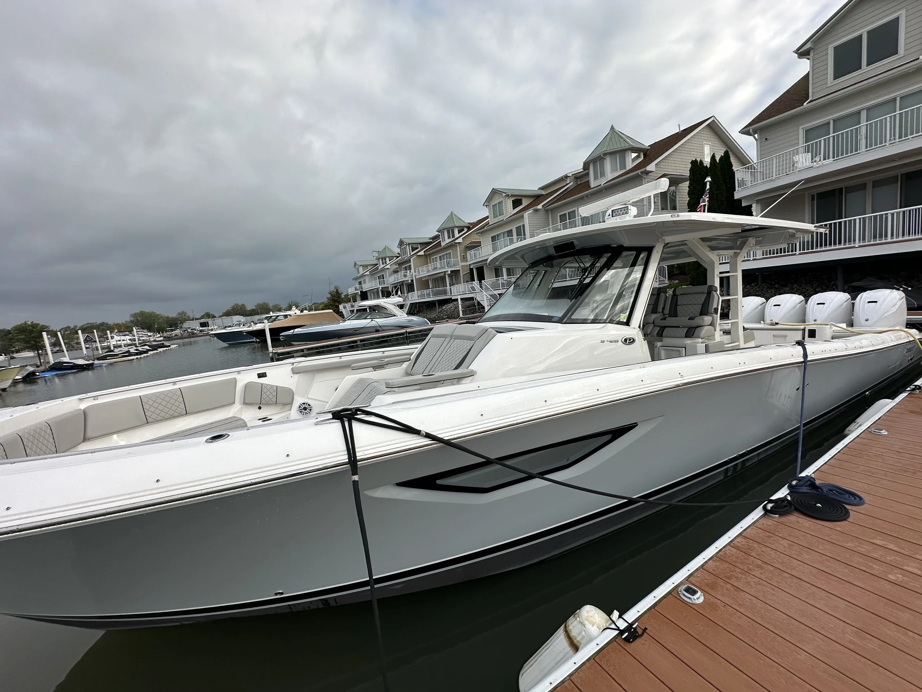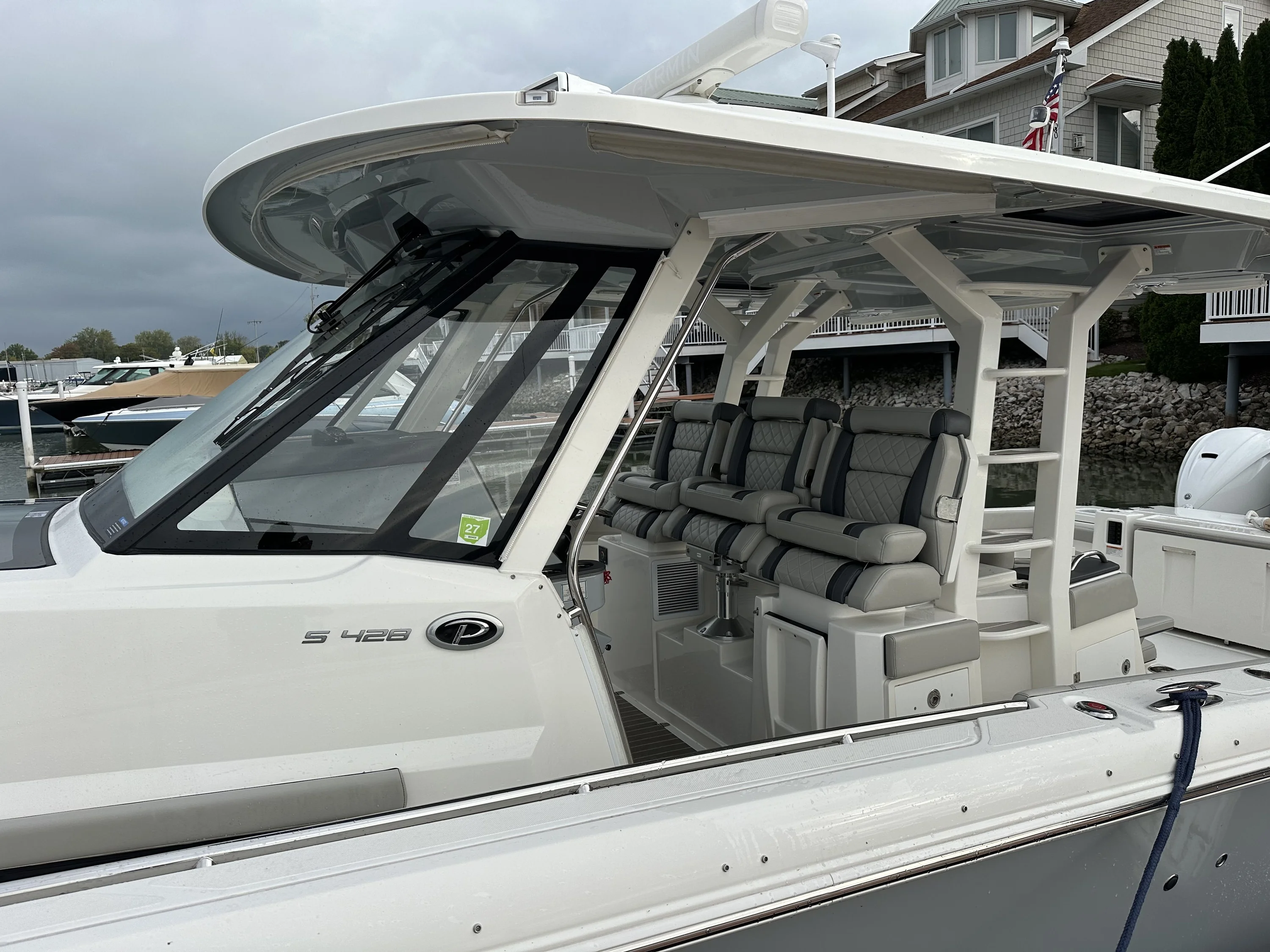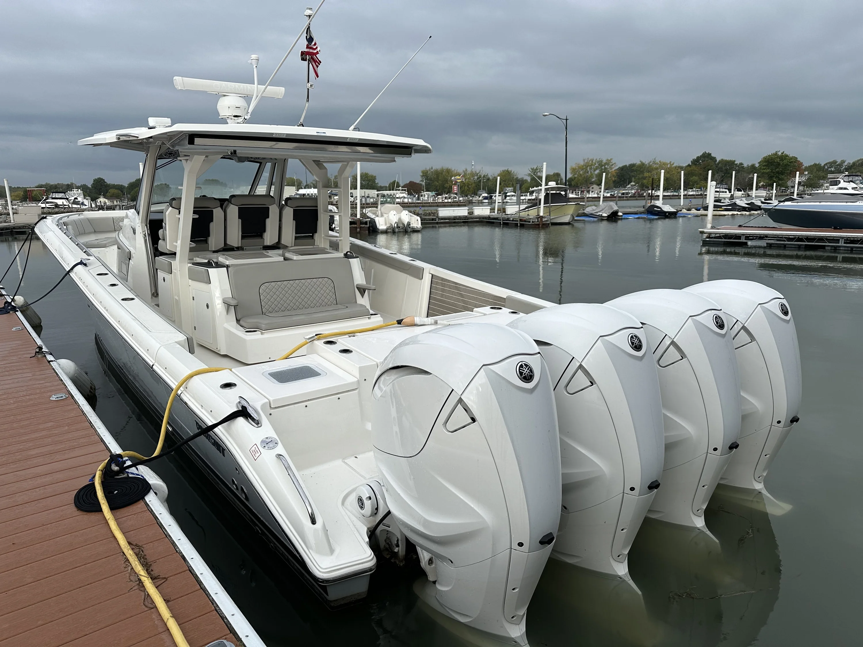 Price Reduced! This 2022 428 is now the best-priced freshwater 428 on the market. All services up to date. She has been used exclusively in fresh water and has been heat stored in the winter since new. As Pursuit's flagship S model, the 428 offers a ton of space, amenities, and power; making it ready to fish or cruise in style. The quad Yamaha 425s allow the boat to cruise at 40 mph and top out in the mid 50s. Some options worth noting include- Seakeeper gyro stabilizer