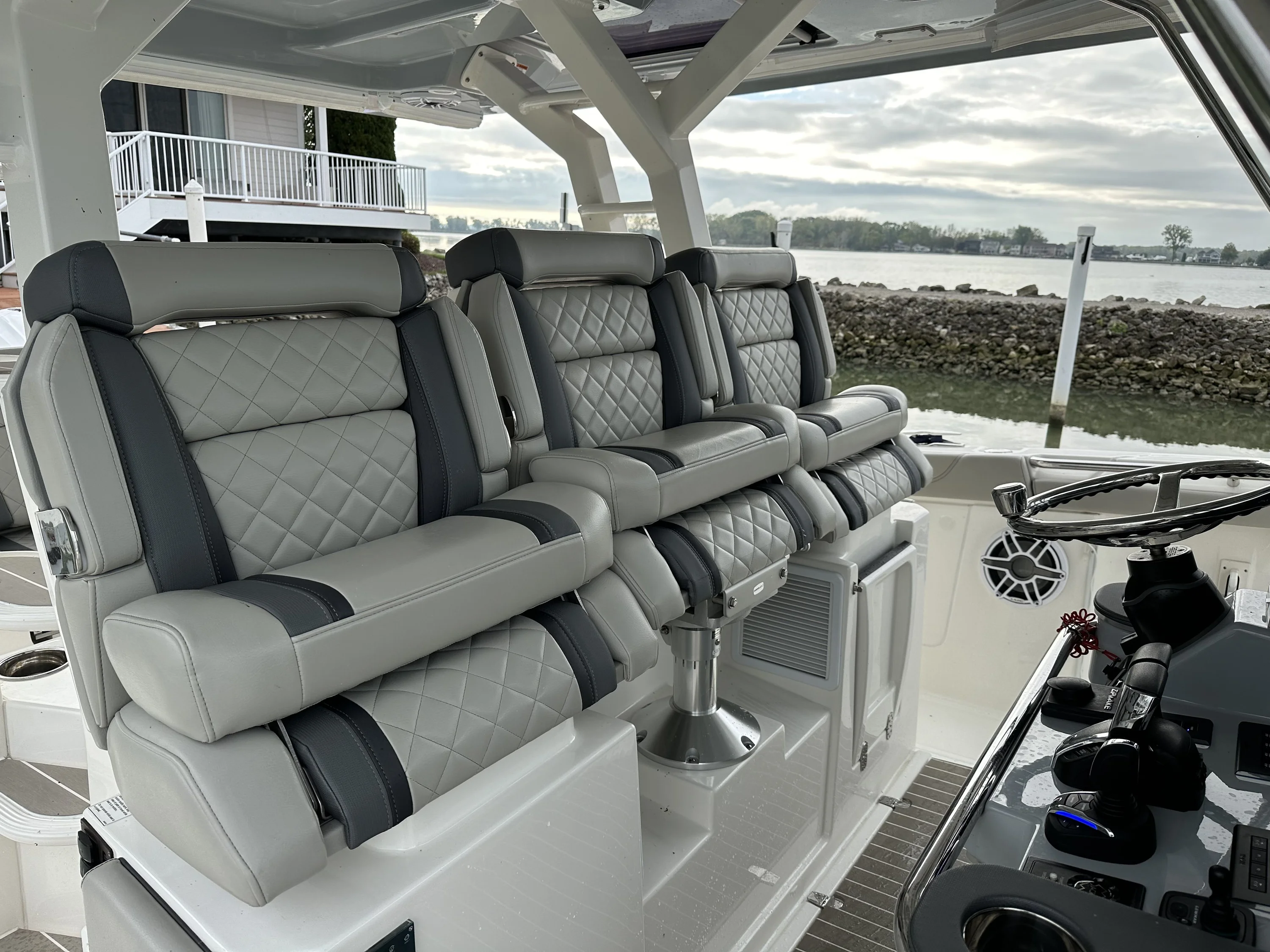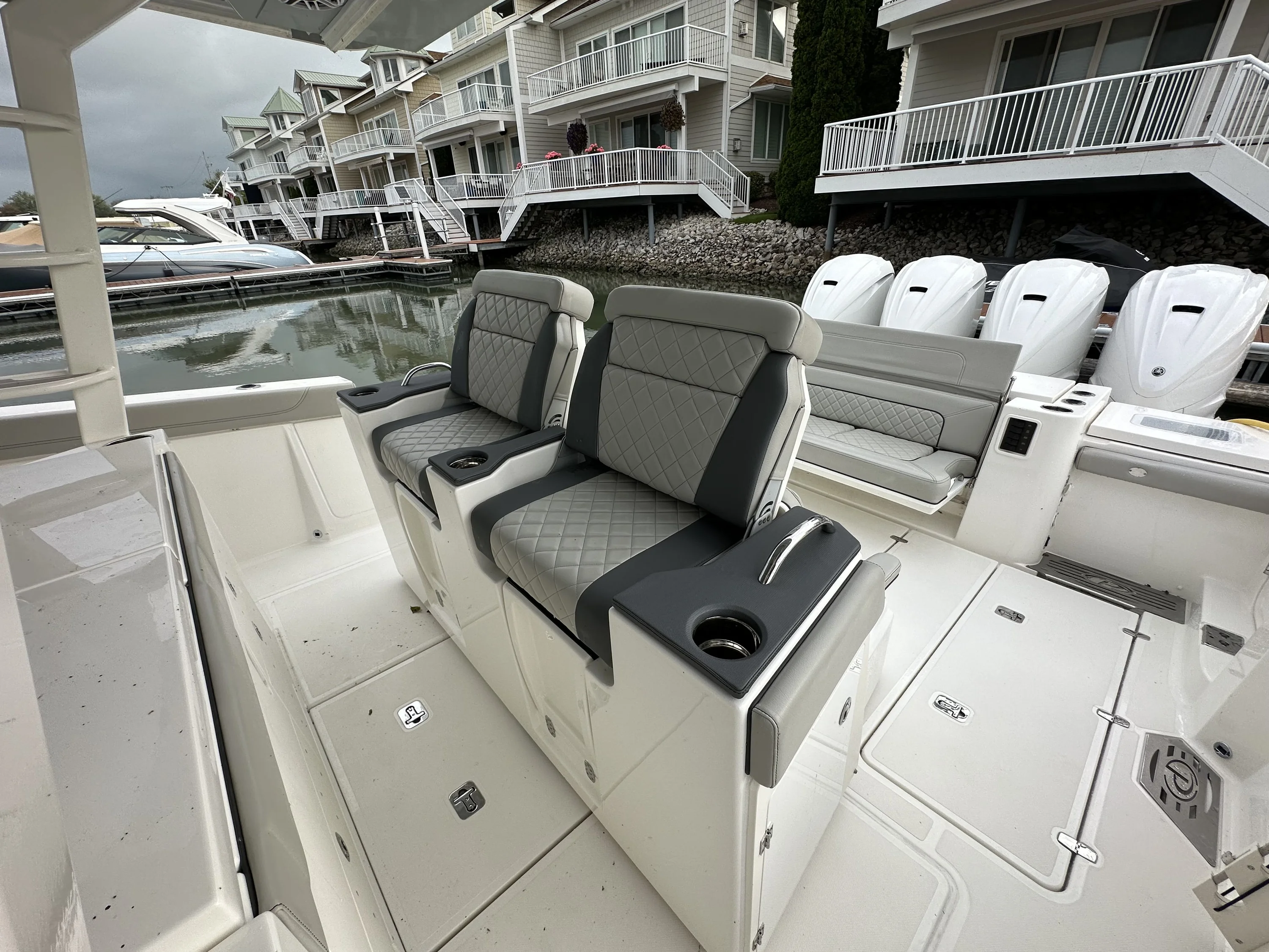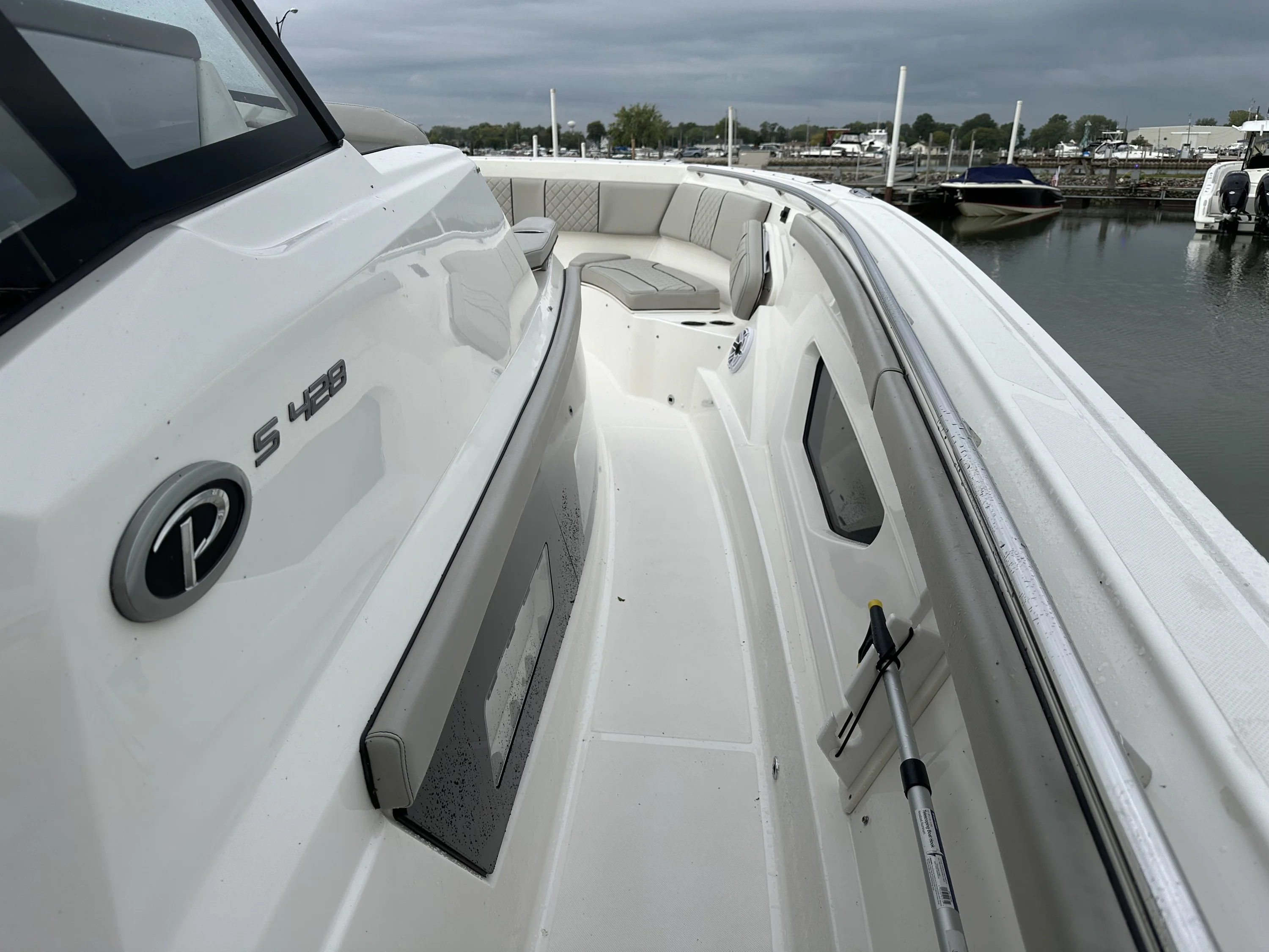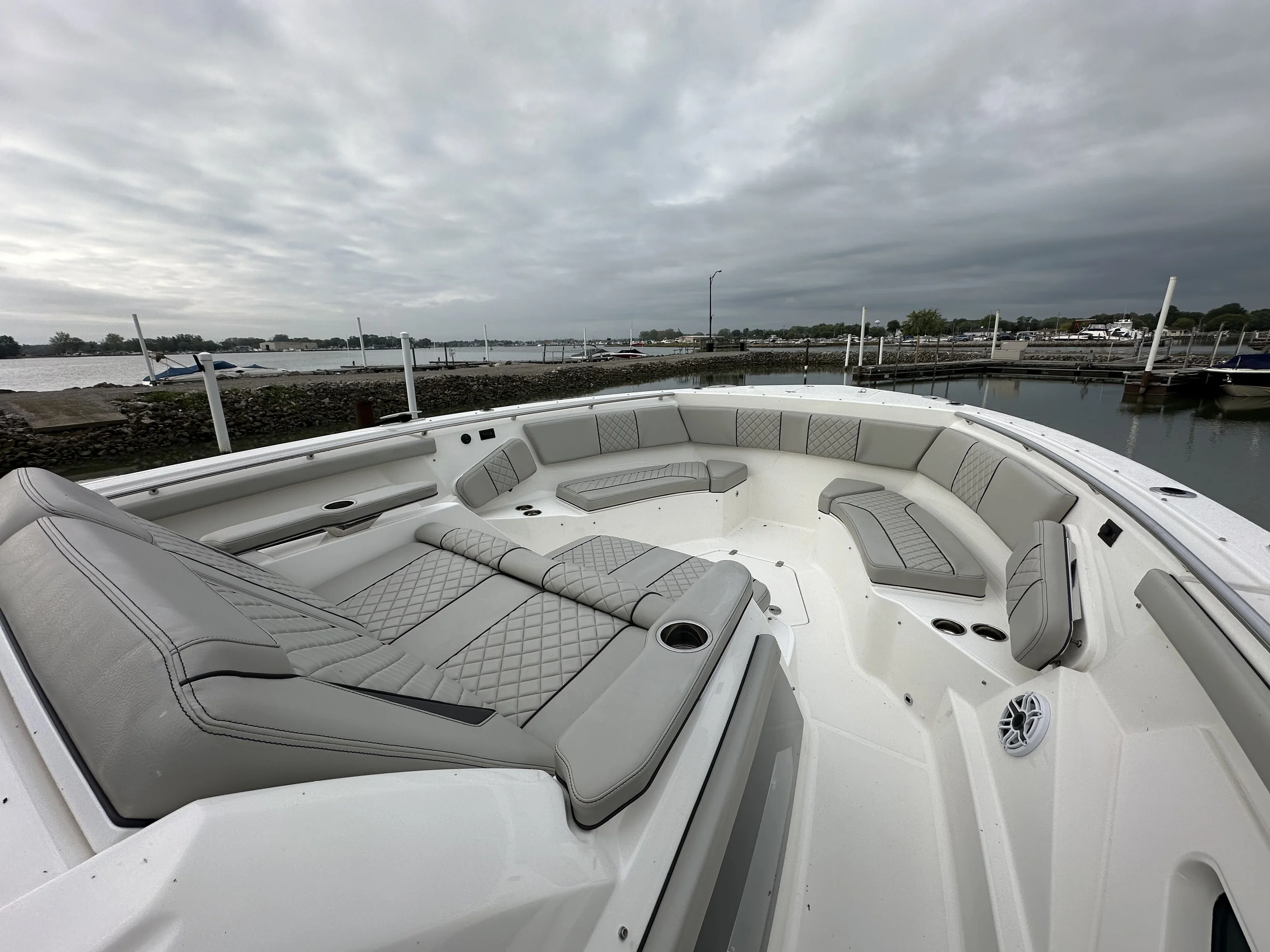 Price Reduced! This 2022 428 is now the best-priced freshwater 428 on the market. All services up to date. She has been used exclusively in fresh water and has been heat stored in the winter since new. As Pursuit's flagship S model, the 428 offers a ton of space, amenities, and power; making it ready to fish or cruise in style. The quad Yamaha 425s allow the boat to cruise at 40 mph and top out in the mid 50s. Some options worth noting include- Seakeeper gyro stabilizer