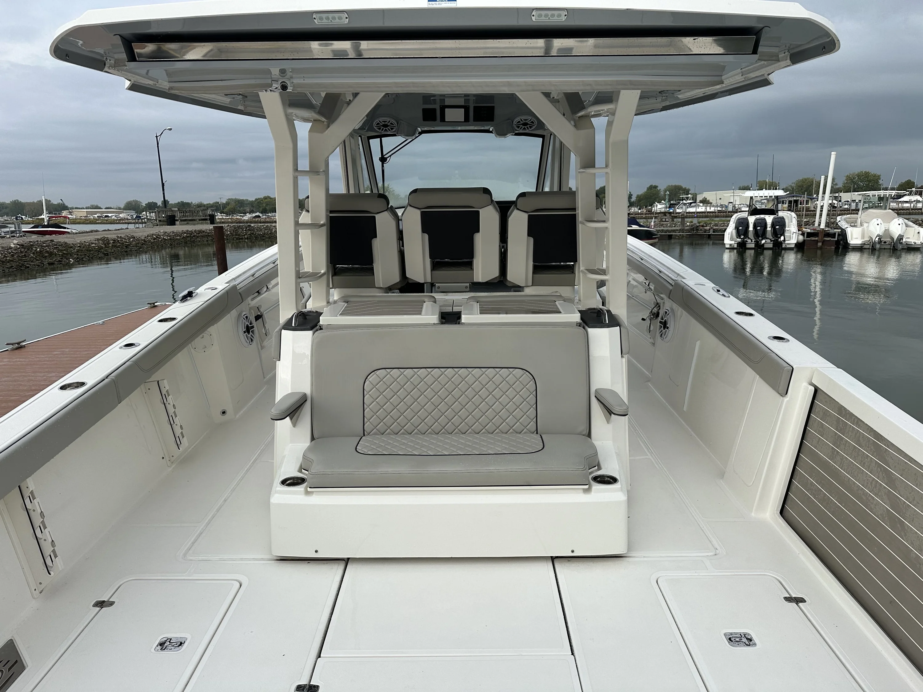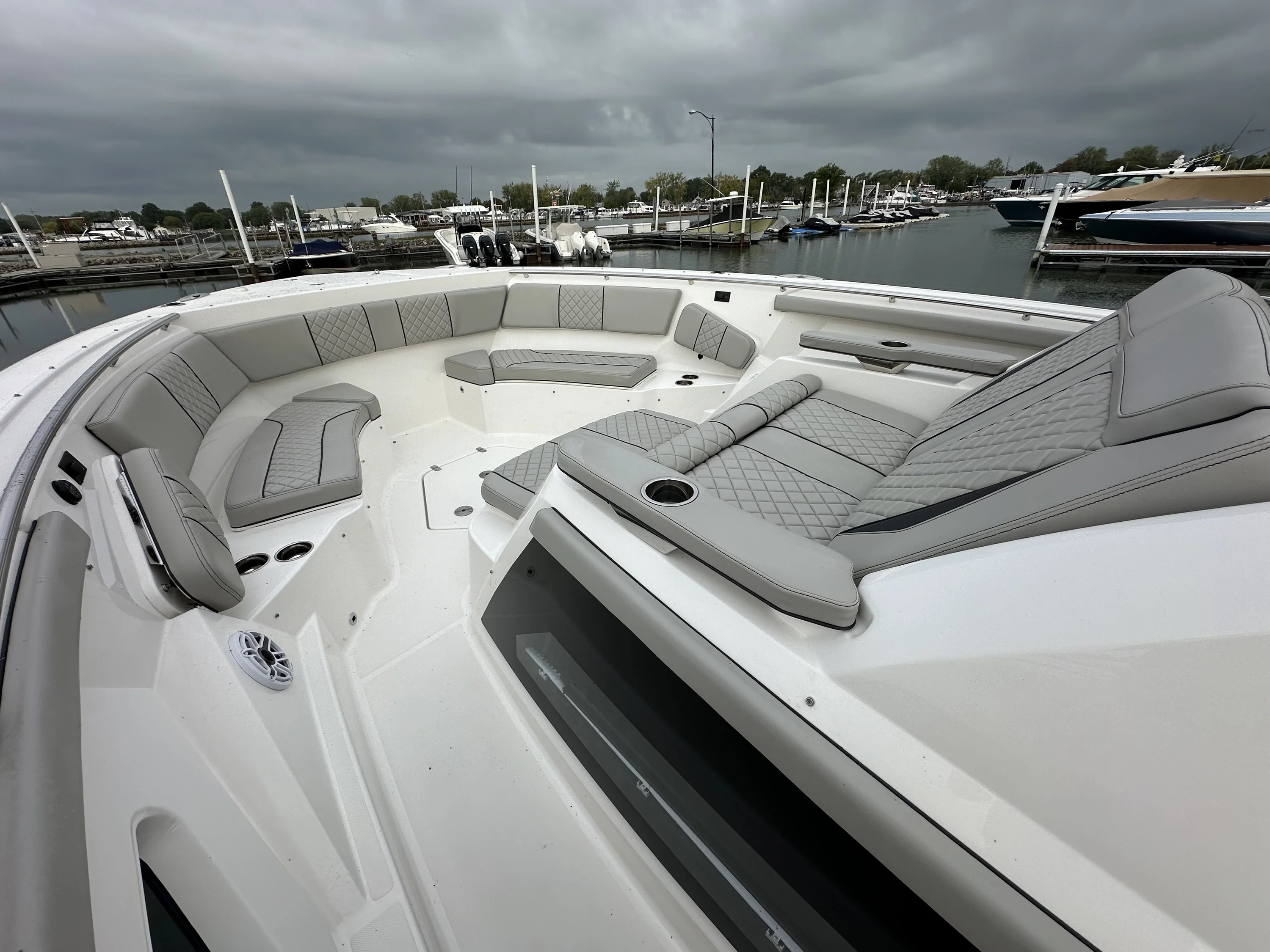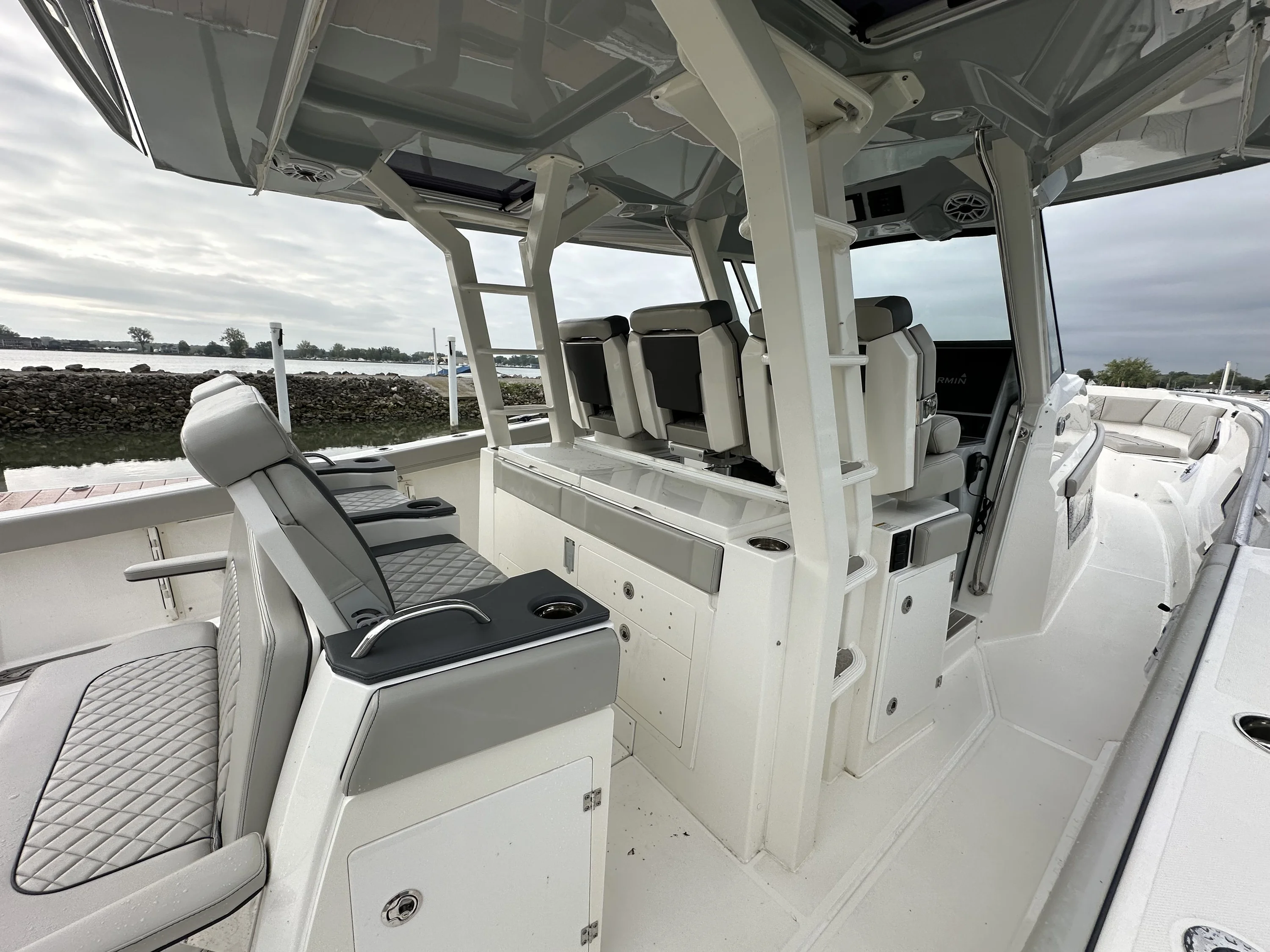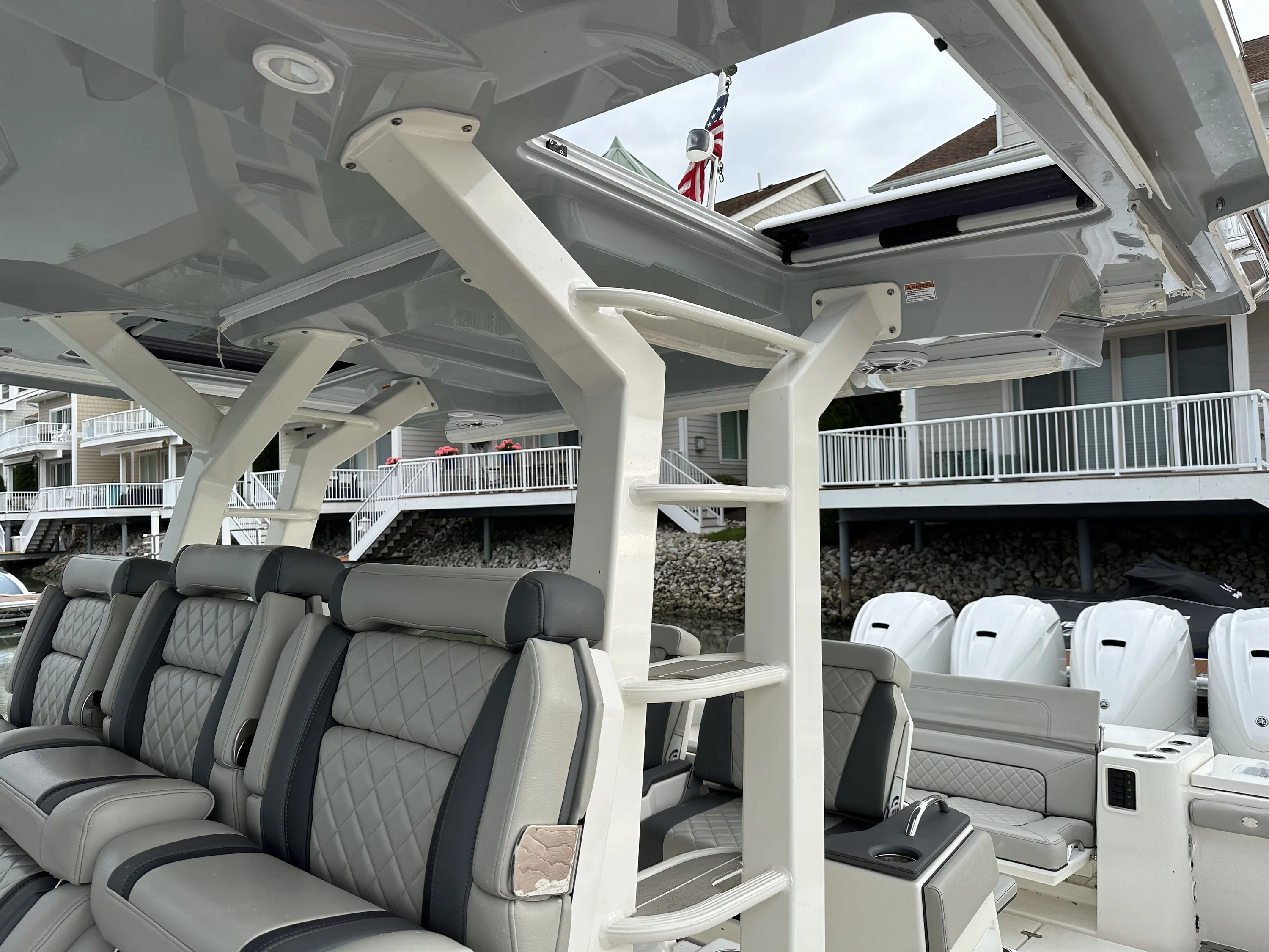 Price Reduced! This 2022 428 is now the best-priced freshwater 428 on the market. All services up to date. She has been used exclusively in fresh water and has been heat stored in the winter since new. As Pursuit's flagship S model, the 428 offers a ton of space, amenities, and power; making it ready to fish or cruise in style. The quad Yamaha 425s allow the boat to cruise at 40 mph and top out in the mid 50s. Some options worth noting include- Seakeeper gyro stabilizer