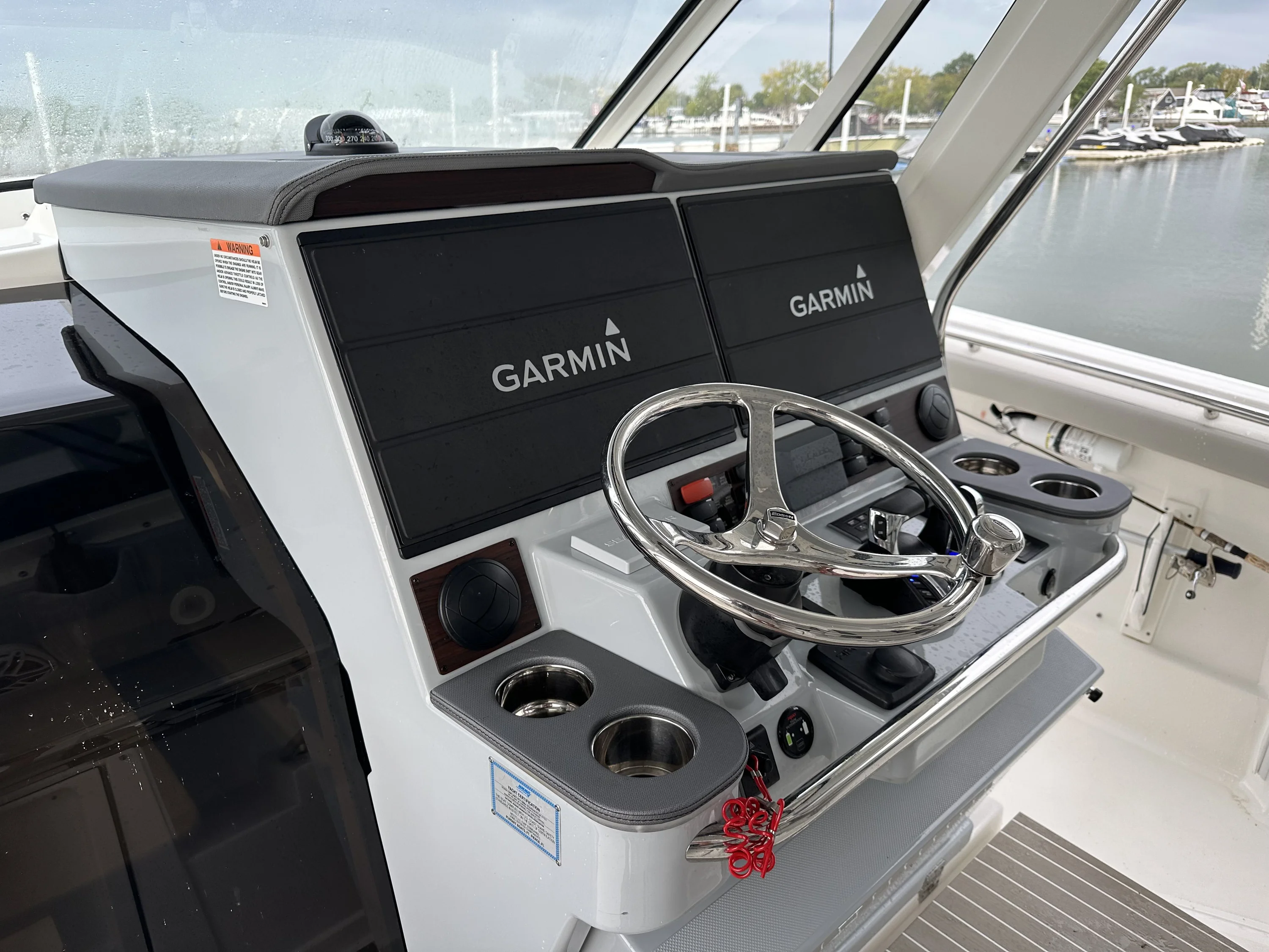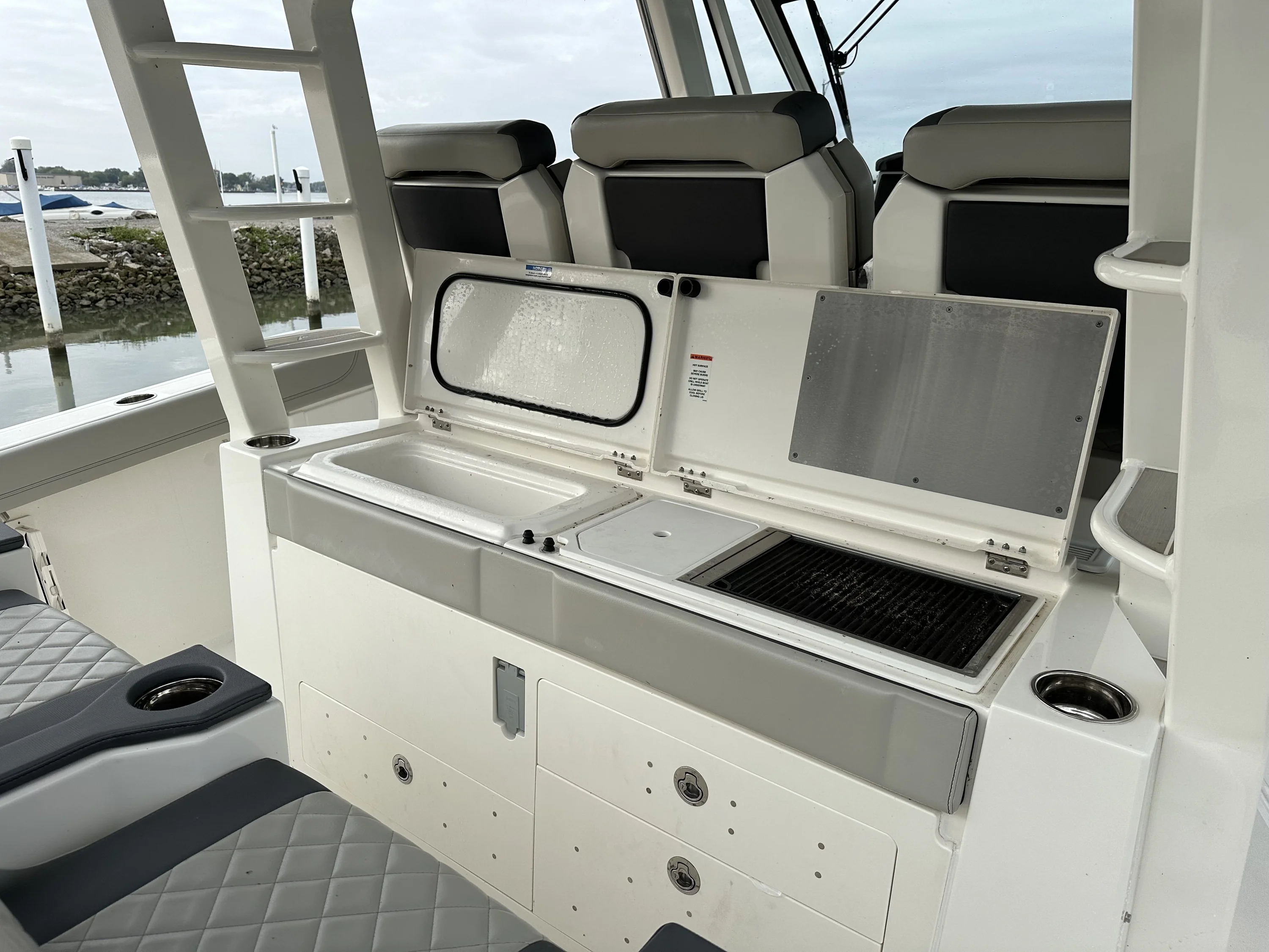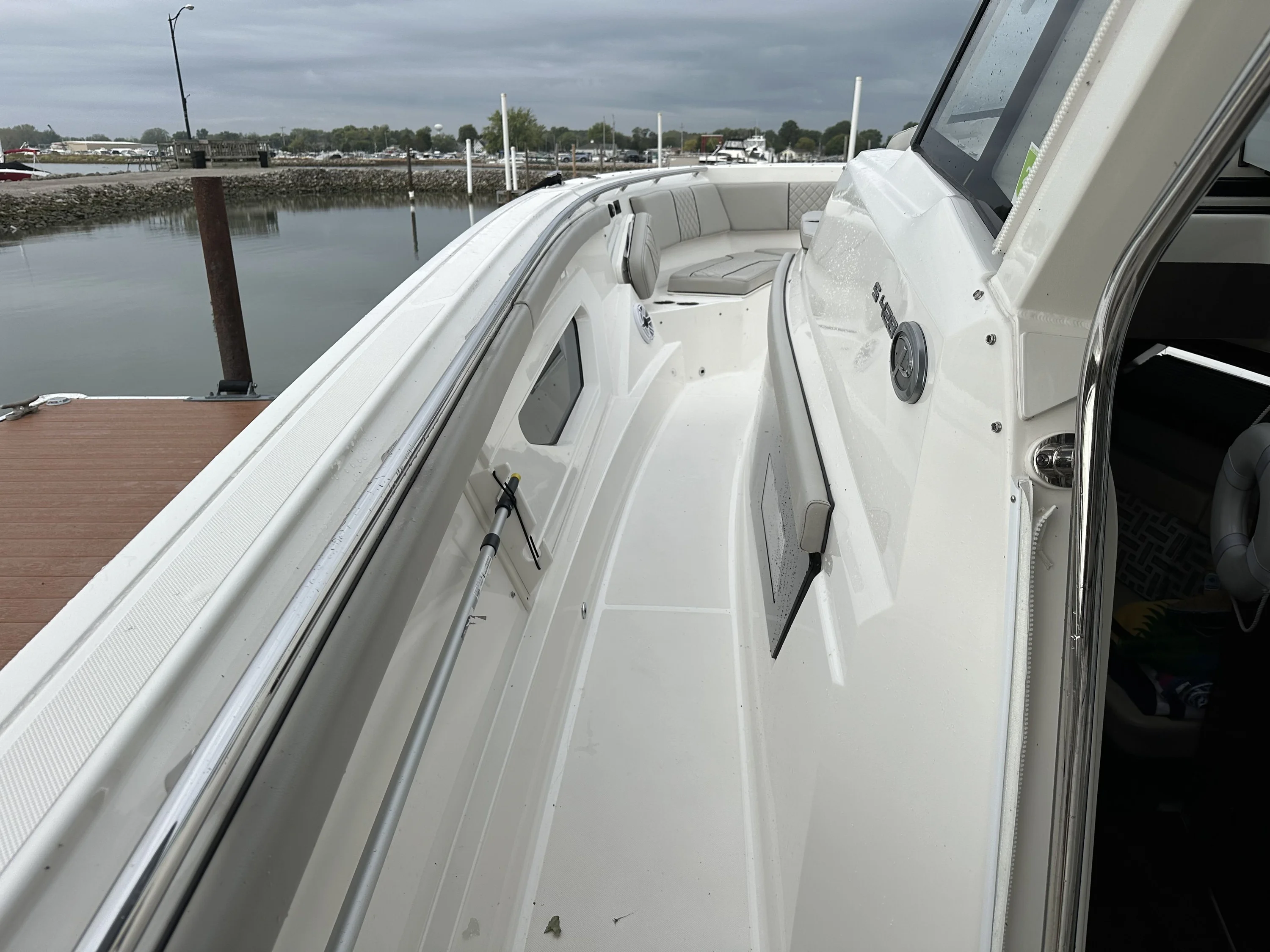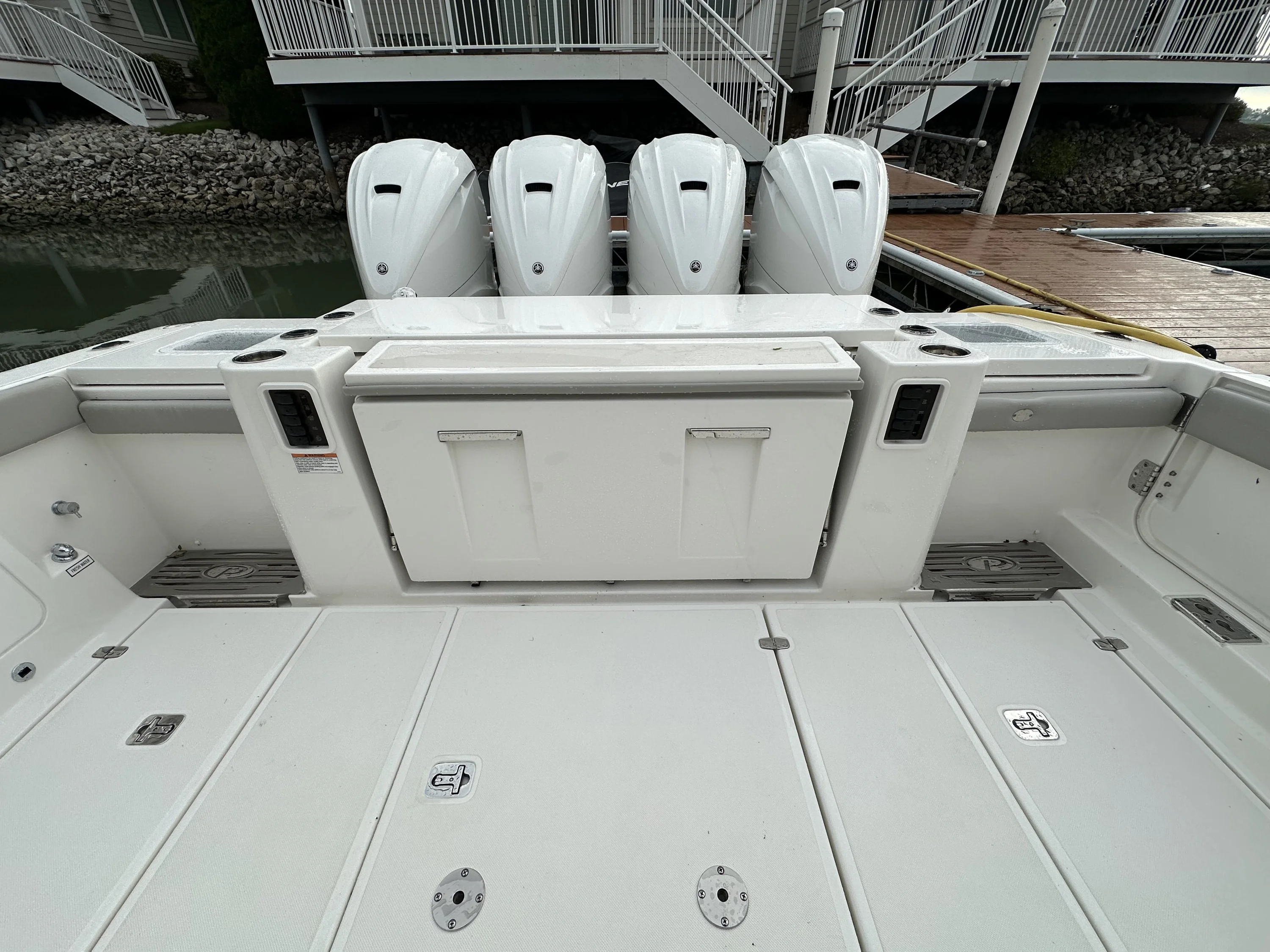 Price Reduced! This 2022 428 is now the best-priced freshwater 428 on the market. All services up to date. She has been used exclusively in fresh water and has been heat stored in the winter since new. As Pursuit's flagship S model, the 428 offers a ton of space, amenities, and power; making it ready to fish or cruise in style. The quad Yamaha 425s allow the boat to cruise at 40 mph and top out in the mid 50s. Some options worth noting include- Seakeeper gyro stabilizer