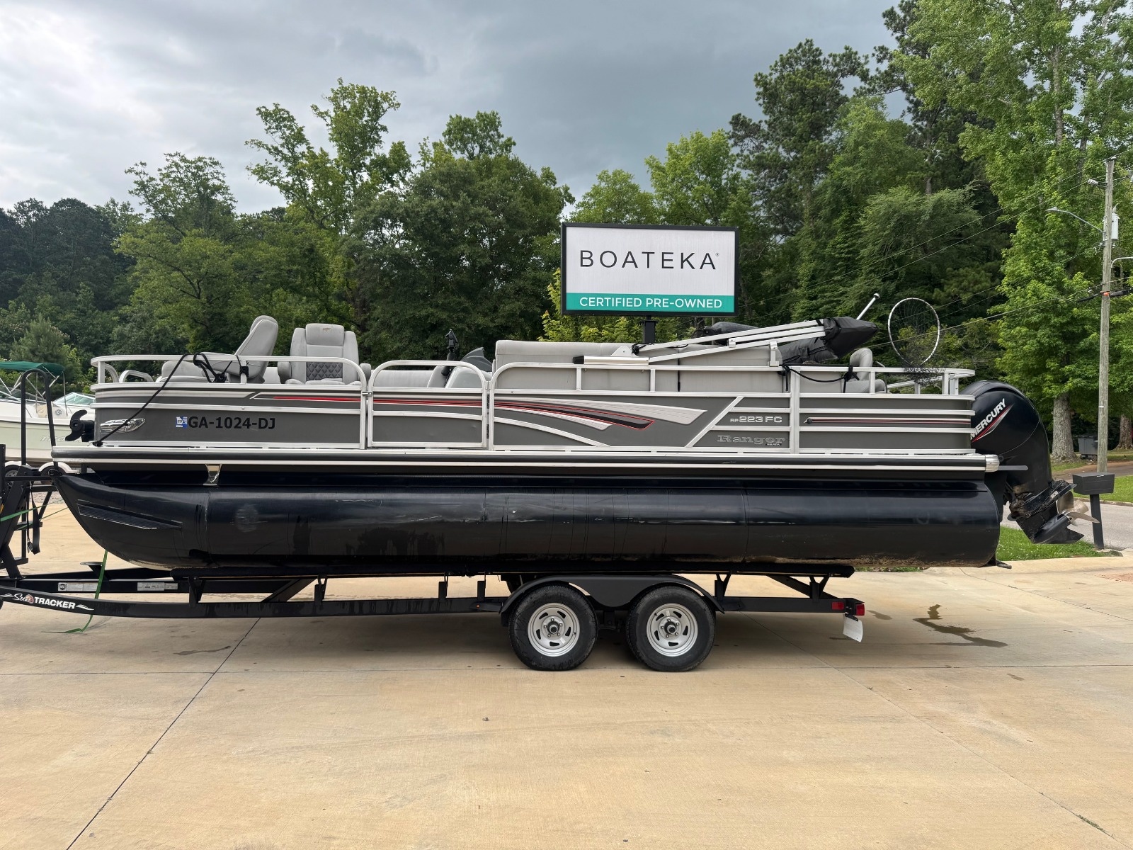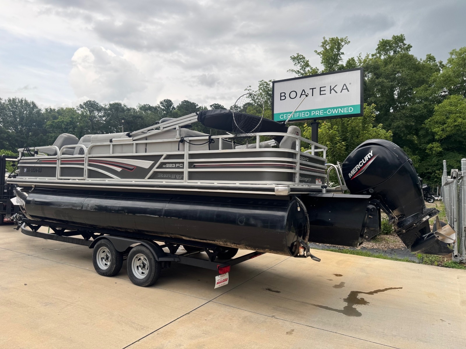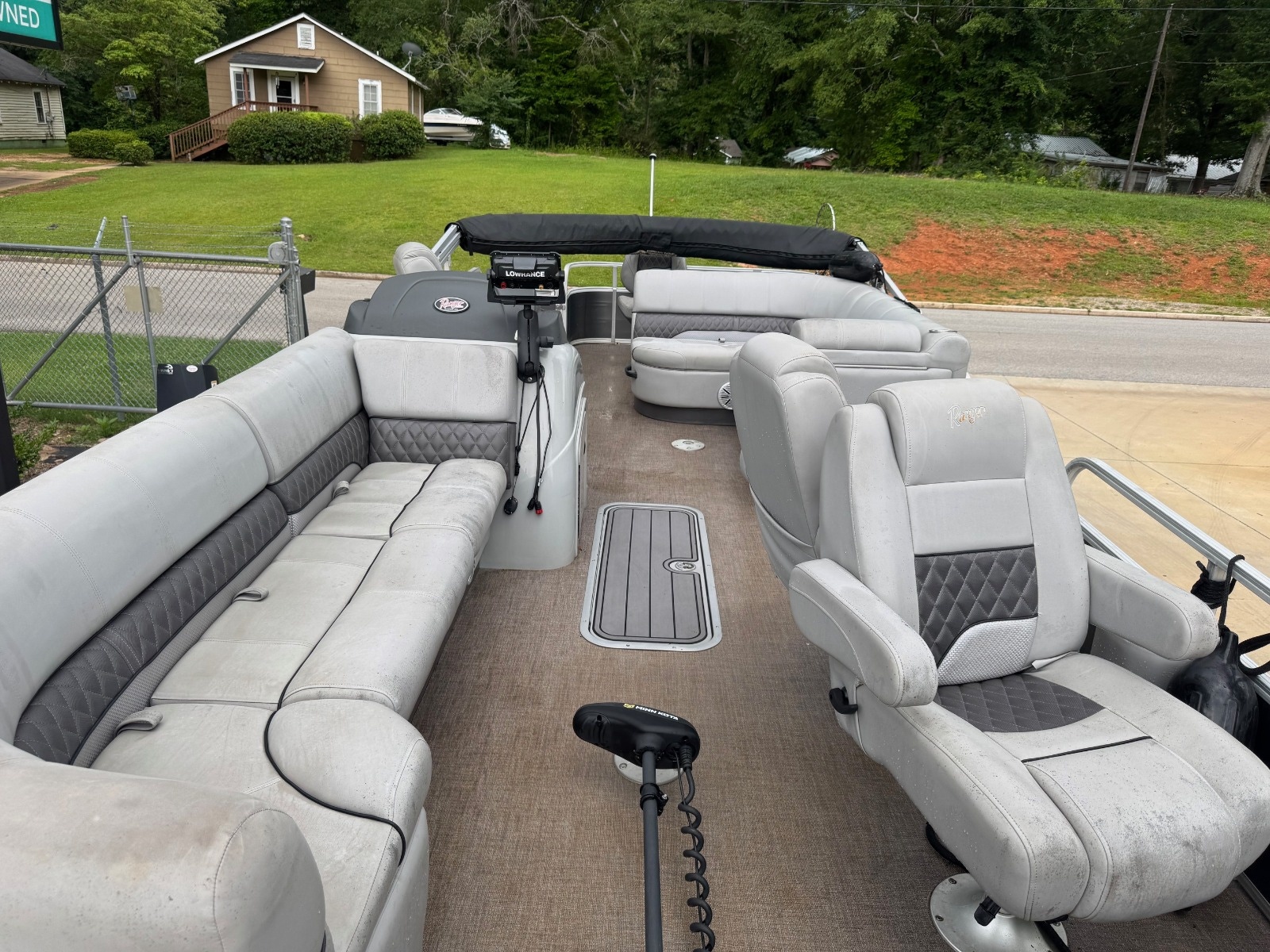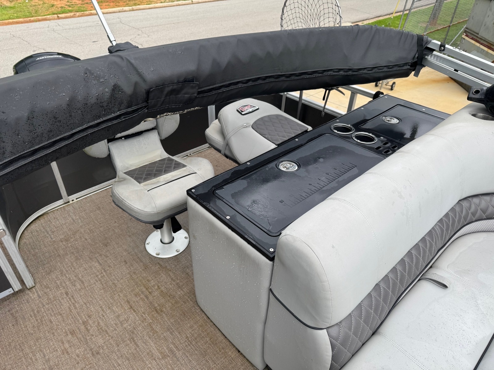 Now Available! A Tritoon Fishing machine! Powered with the Mercury 150hp outboard motor and has plenty of fishing upgrades throughout the boat!