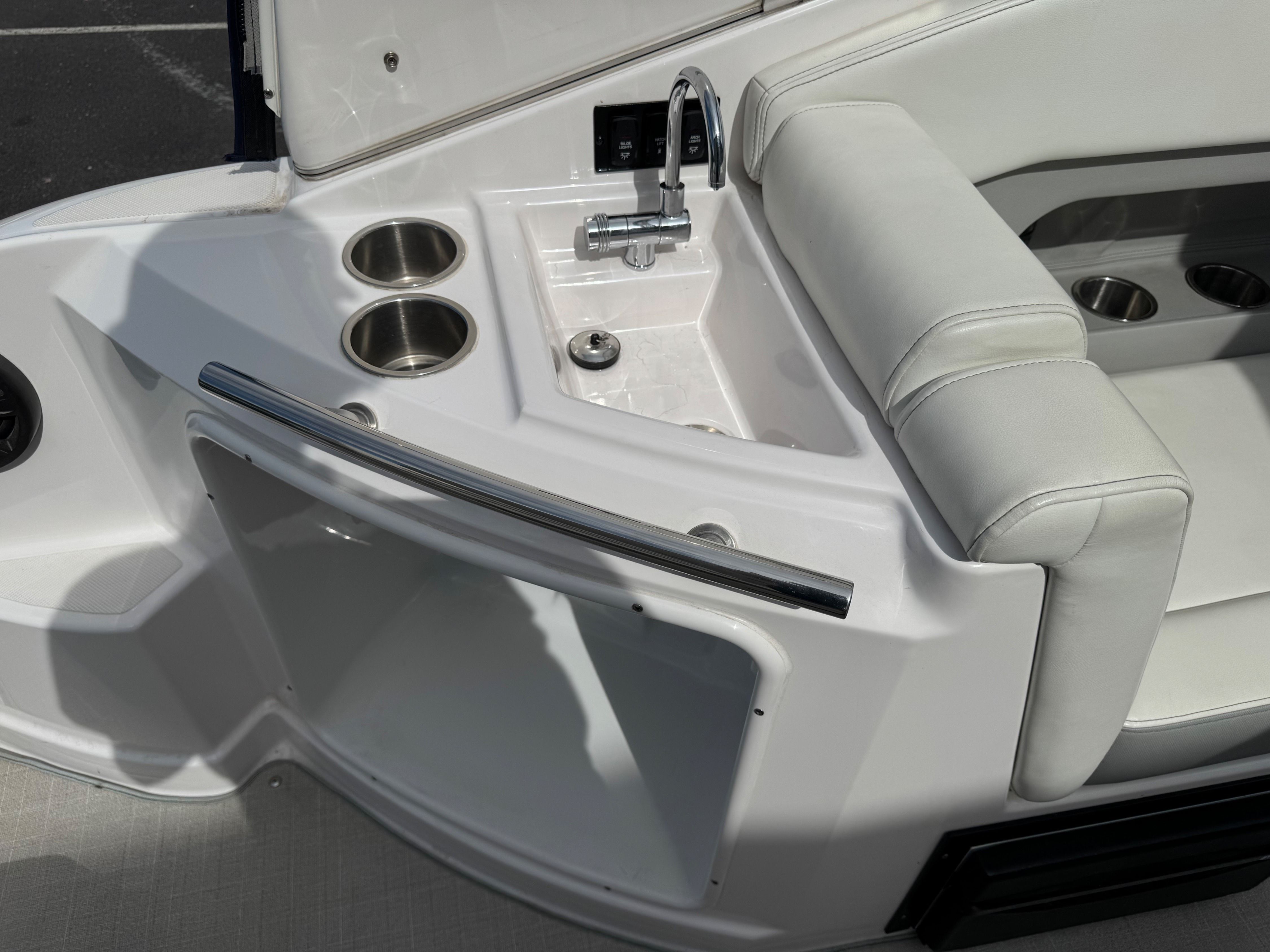 2022 Regal 28 Express: Experience Ultimate Luxury on Water The 2022 Regal 28 Express is a marvelous progression of boating innovation, combining superior craftsmanship with distinctive design. Unmatched in its luxury and performance, it not only promises magical adventures but ensures comfort all the way. Exquisite Design The 2022 Regal 28 Express boasts an exquisite exterior design that perfectly blends sleek lines with a dynamic profile. The hull is not only eye-catching but also optimizes the boat's performance, guaranteeing an exceptionally smooth ride. Grand Interiors Step inside, and you will be greeted with immaculate interiors that showcase high-quality fit and finish. The cabin features a convertible king bed, a full-service galley with premium appliances, luxurious seating, and splendid amenities that make for an unforgettable boating experience. Performance and Efficiency Powered by a formidable engine, the 2022 Regal 28 Express imbibes technical perfection with unmatched agility and speed. It is designed to slice through waters smoothly while offering excellent control and stability. Moreover, the boat's advanced navigation system ensures a safe and effortless journey. Comfort Meets Functionality Comfort and functionality go hand-in-hand in this boat. Its strategic layout ensures ample walking room and storage space. The aft seating area can be transformed into a sun lounge or a dining area, making it ideal for entertaining guests or simply enjoying an intimate meal on the water. Safety and Navigation No stone is left unturned when it comes to safety. The 2022 Regal 28 Express is equipped with top-notch navigation systems to ensure secure voyages. Safety features such as have been seamlessly integrated into the design to ensure peace of mind throughout your journey. Experience the perfect balance of elegance, luxury, and performance with the 2022 Regal 28 Express, where every journey becomes a cherished memory.