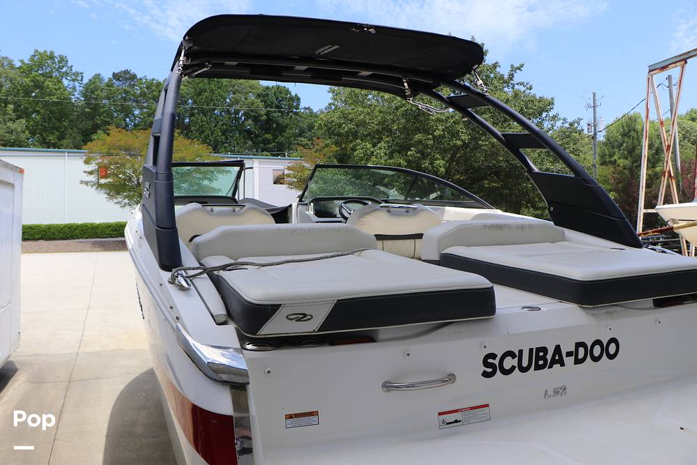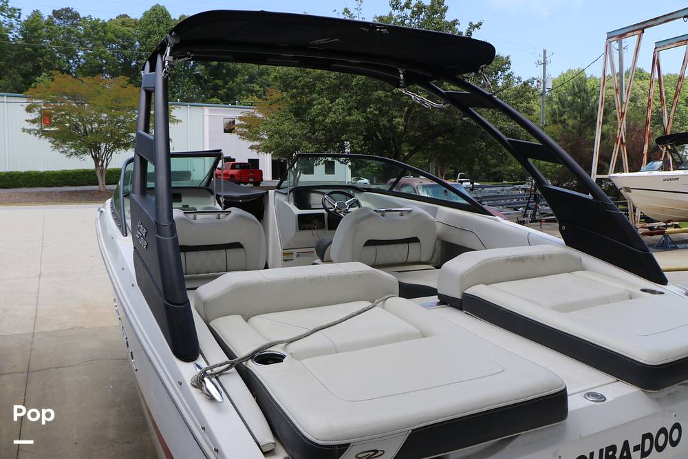 The versatile seating includes reversible captain's chairs, transom seating perfect for watching tubers and skiers, and passenger-side lounging areas. Multiple built-in coolers and a walkthrough windshield provide convenience and easy access to bow seating.