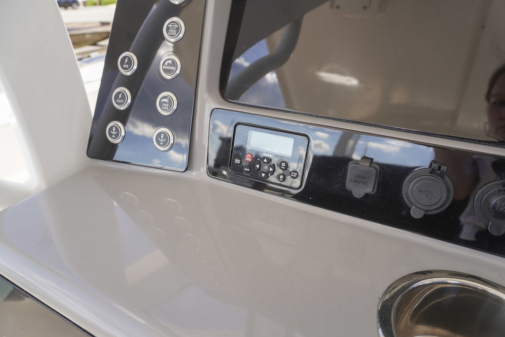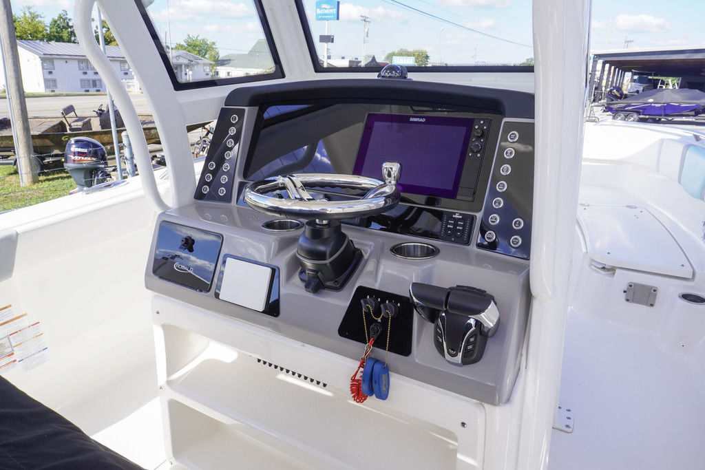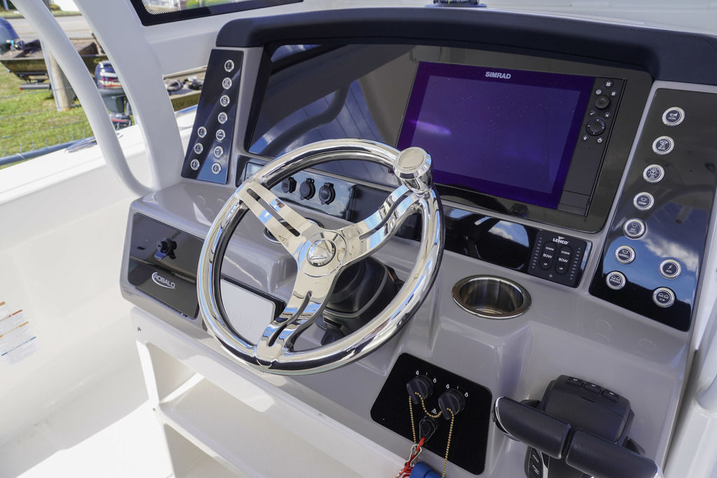 Touchscreen helm displays (if equipped), digital controls, and intuitive layout