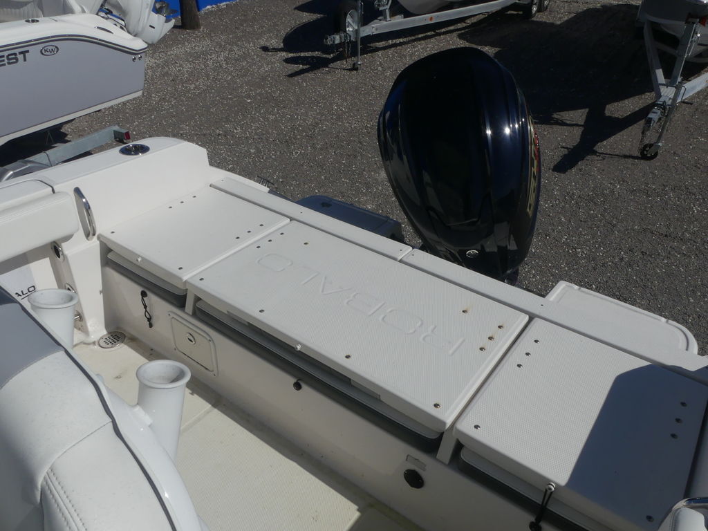 The Robalo R230 is designed to satisfy all of your fishing and performance needs. Outfitted with our Hydro Lift™ multi angle hull design, horizontal tubed rod storage, SeaStar tilt hydraulic steering, and a 25 gallon live well. The R230 is perfect for those with the desire for endless possibilities.