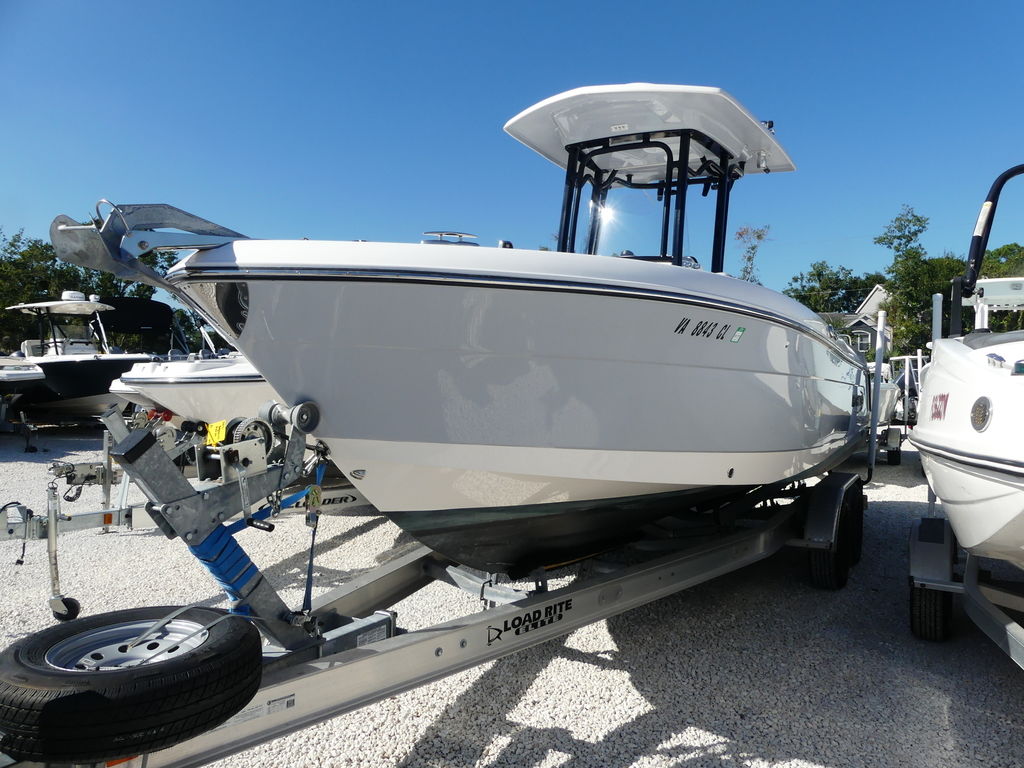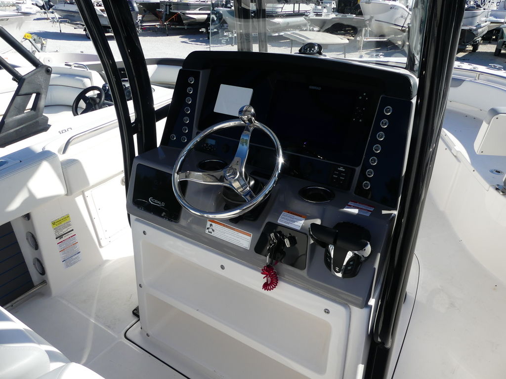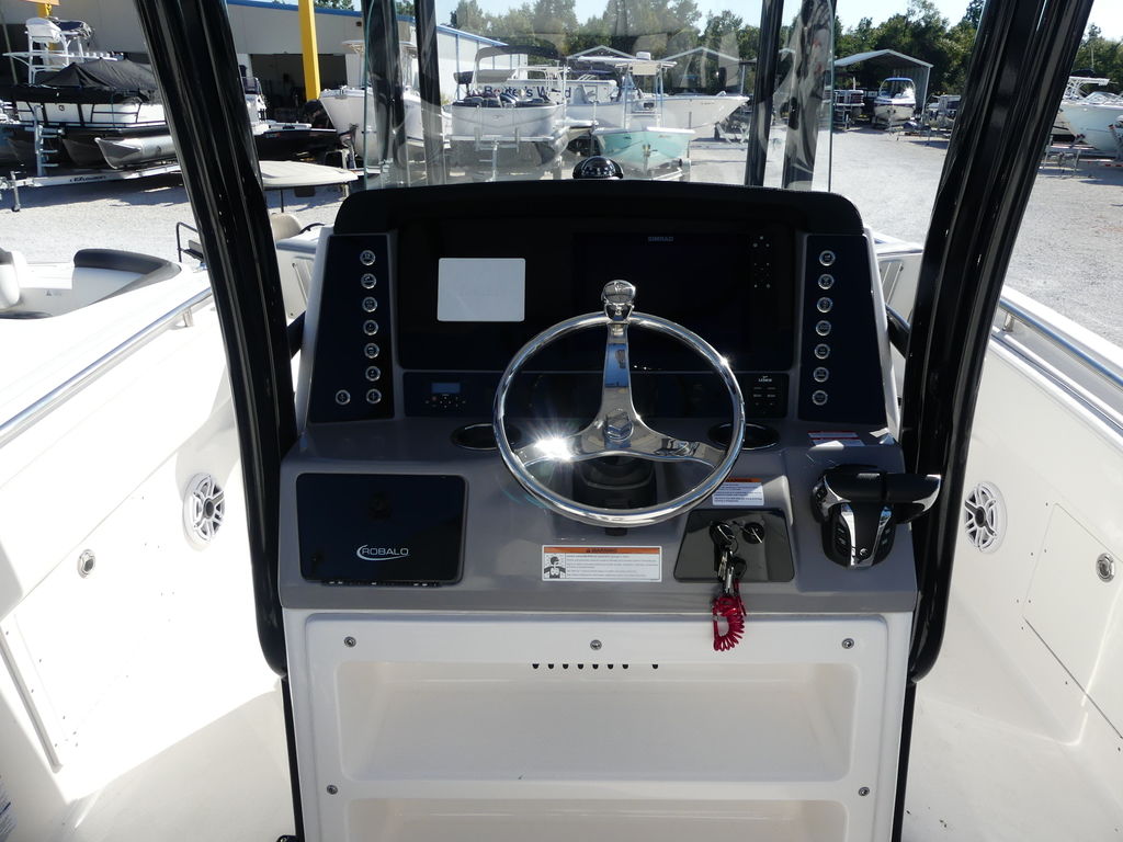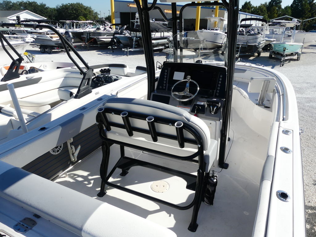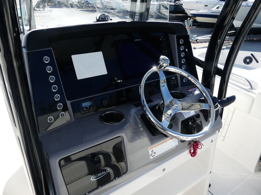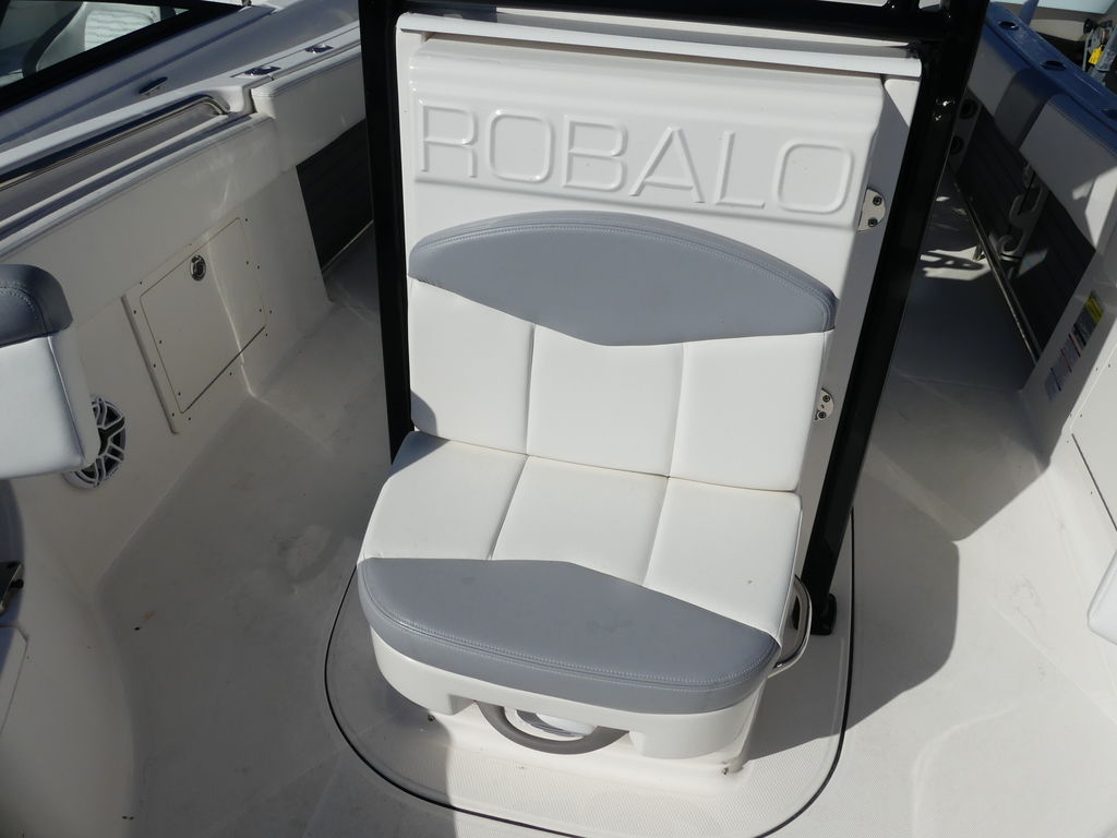 The sensational R242 is one of Robalo's newest center console offering available at Reel Deal pricing. Brace yourself, fish boat design just took another giant leap forward. Upfront, the large casting platform is sure-footed and accessible. In the cockpit, a forward entry privacy head comes standard with a porta-pottie and a screened opening port light. Little extras like LED cockpit lighting, a bow filler cushion and a freshwater cockpit shower are all standard. Serious anglers will appreciate the best-in-class livewell capacity and massive insulated fish box storage. At this length, nobody does it bigger or better
