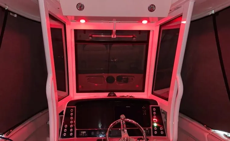 Freshwater / Great Lakes boat since new this Kevlar reinforced hull Features upgraded Twin Yamaha- 250hp 4-Stroke Motors with only 125 hours. Notable features include but are not limited to the following: Enclosed Head (electric), Windlass w/Polished Stainless Steel Anchor, Simrad touchscreen multi display with GPS, Engine data and fishfinder, Dive door, 3 batteries, custom interior LED lighting, mooring Canvas Cover and MUCH more!
