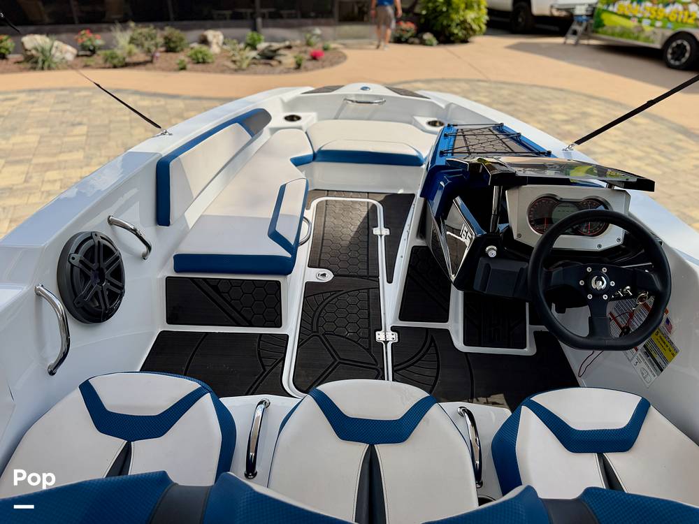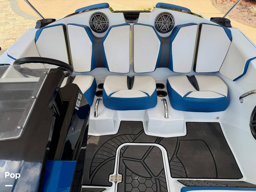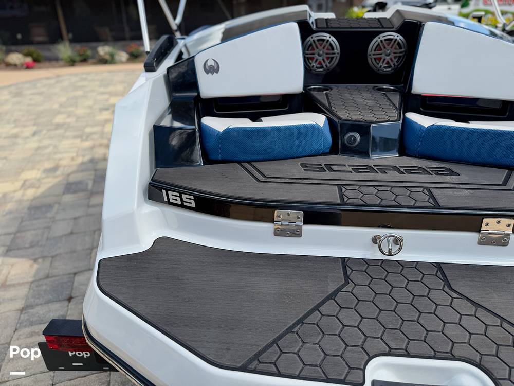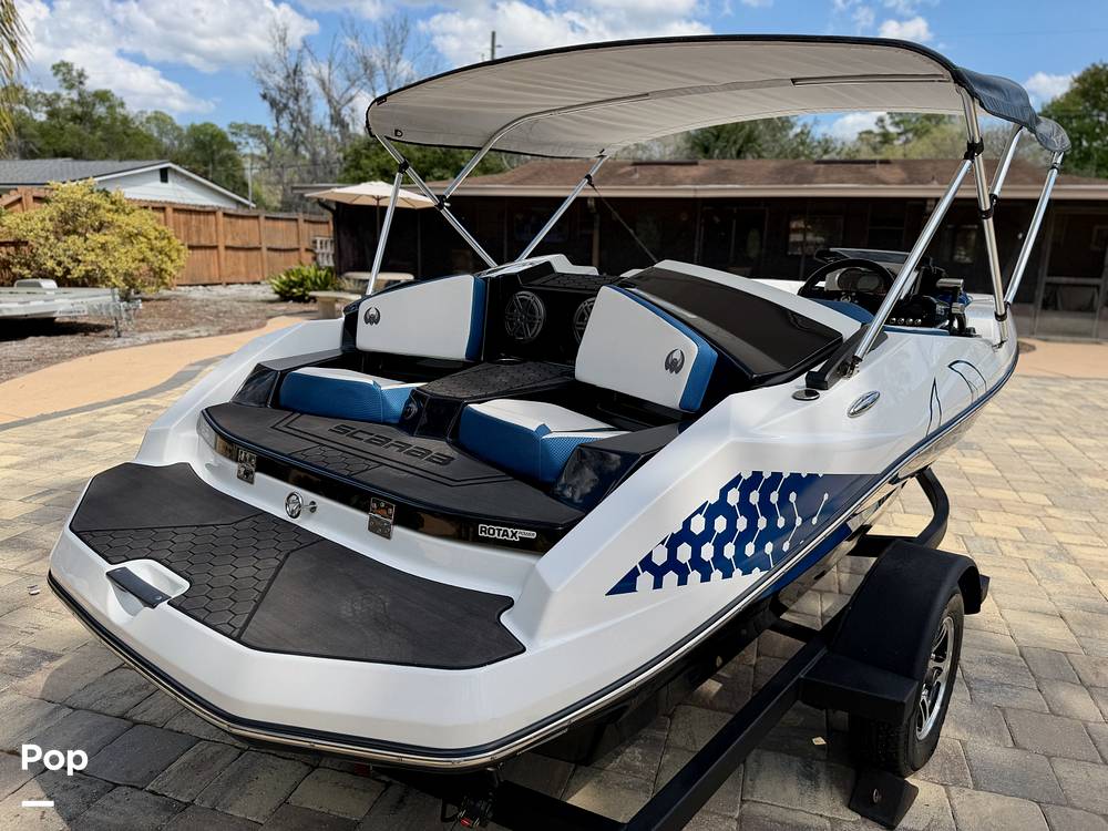 This 2022 Scarab 165 ID jet boat offers strong performance and sporty handling in a compact and easy-to-tow package. Powered by a Rotax 300 HP engine with jet propulsion, the boat delivers quick acceleration and responsive handling on the water. The propulsion system includes Intelligent Neutral and Reverse (iNR) along with lateral thrust control to assist with maneuverability around docks and tight spaces.