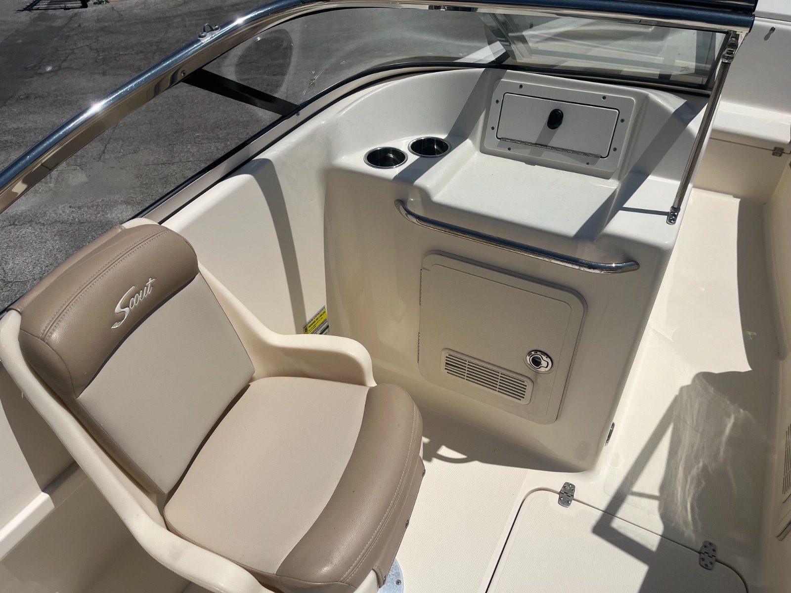 The 210 Dorado is perfectly suited for any activity out on the water and is backed by reliable Yamaha power. Standard features include port and starboard transom swim platforms with boarding ladder, a removable stern seat / wave gate that make it ideal for landing the catch of the day, or just enjoying a day of swimming and diving, a smartly-designed fold-down table with hideaway cooler underneath & captain’s chairs.