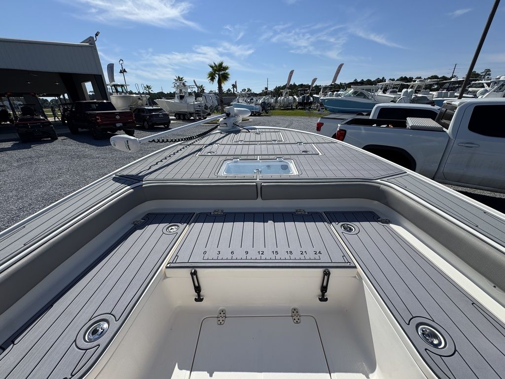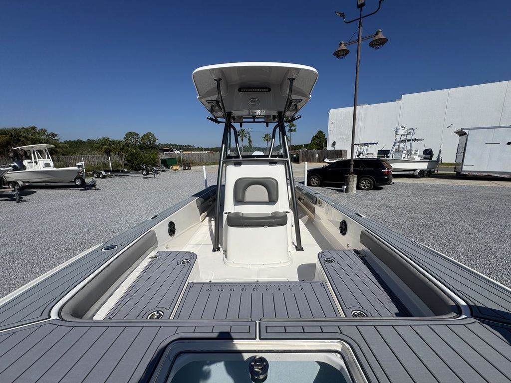 The flagship of the Sea Born bay boat lineup, the FX25 turns heads as one of our most sought-after models for the serious angler. Built on a stable 105" beam with a single-step hull for improving performance, the FX25’s sportfish-style transom and large forward casting deck make it a true hybrid and dual threat for both inshore or offshore.
