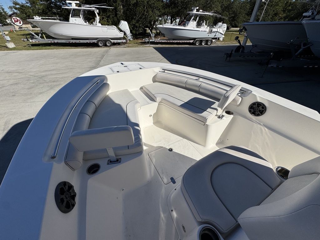 Measuring in at 22' 5" with a 102" beam, this elegant all composite construction 22-foot center console is designed for both serious angling and family fun alike. With higher sides (freeboard) than our bay boats, the LX22 is ready and willing for offshore and inshore cruises. In addition, our 22-footer offers forward-lounge seating, aft bench seating atop a practical deck layout making it feel much larger than center console boats within its class.