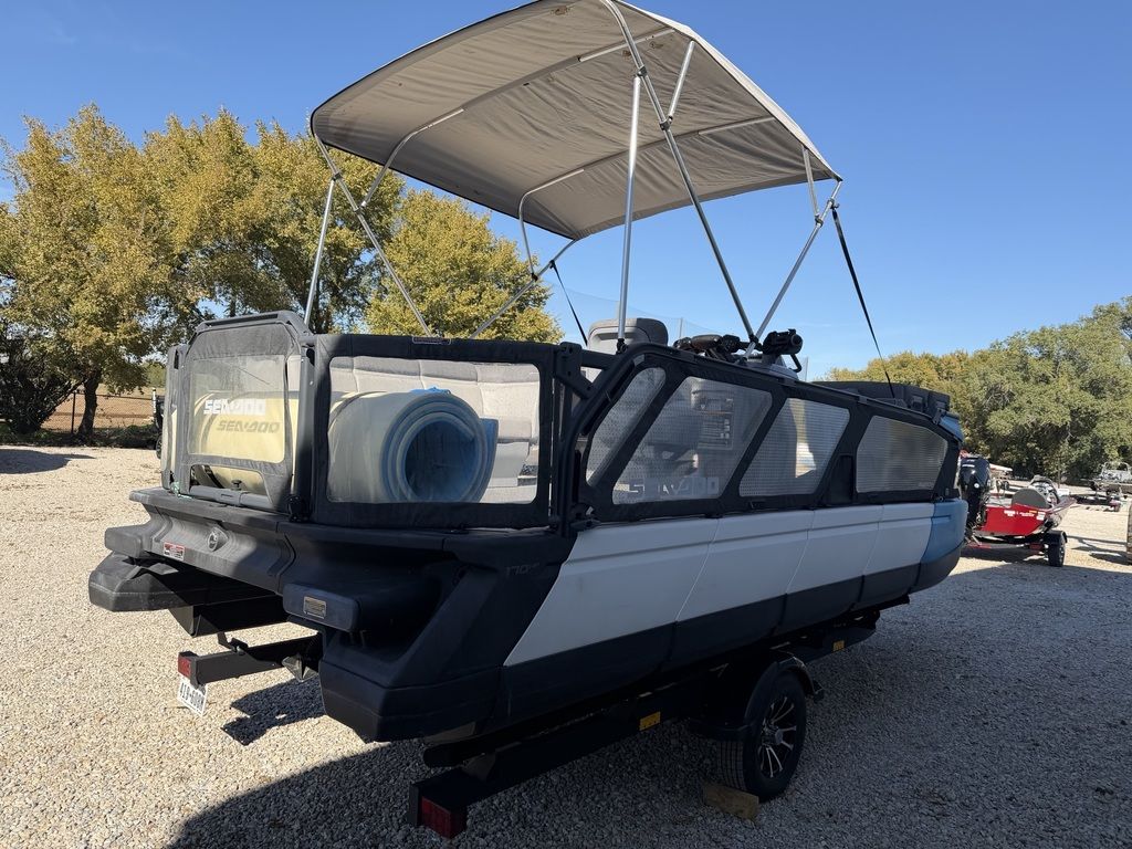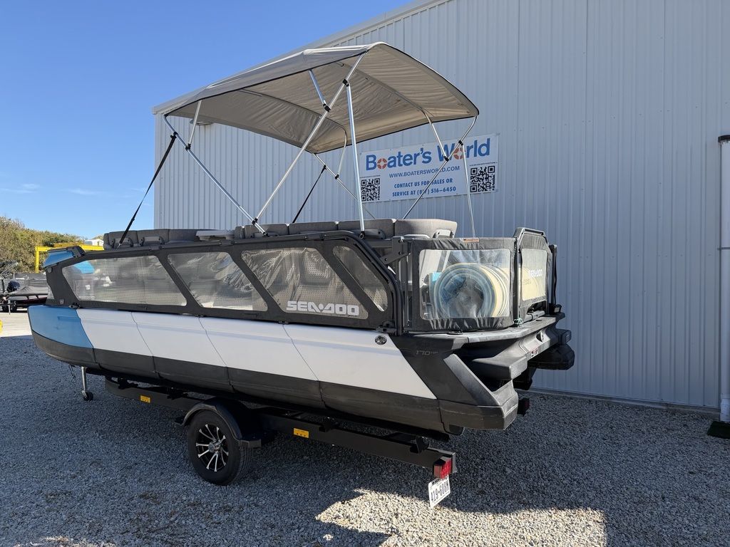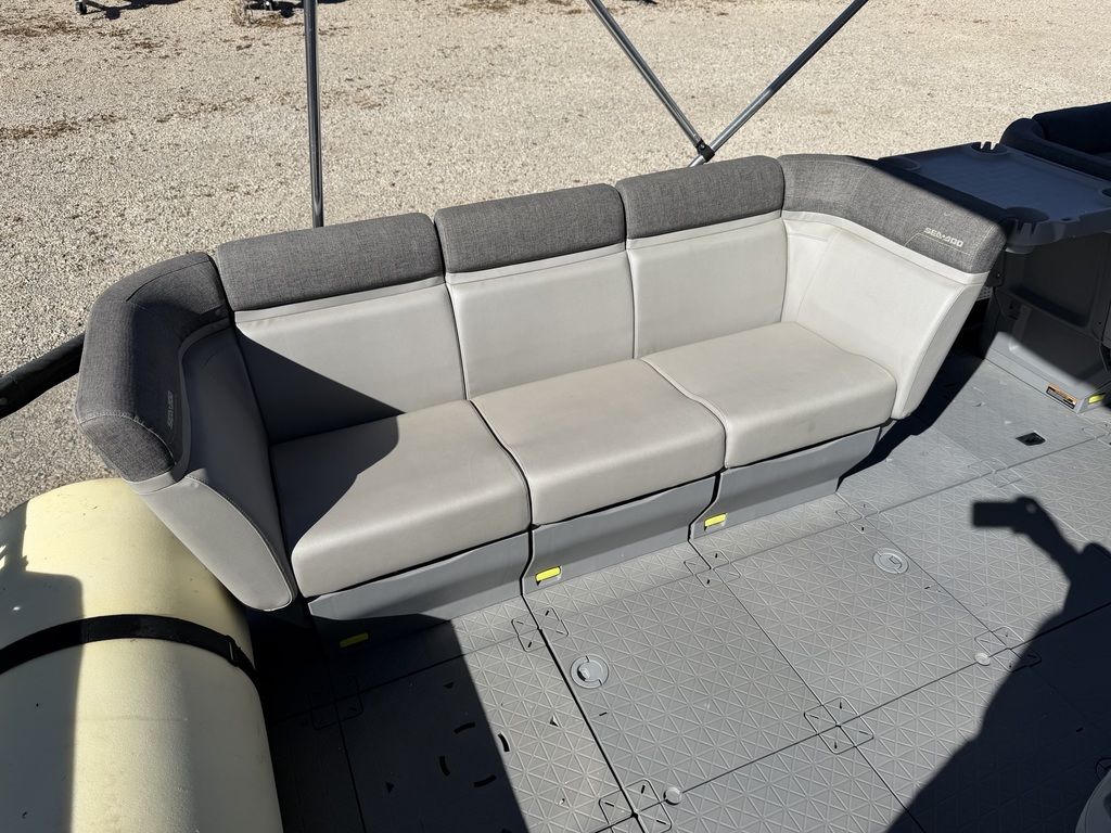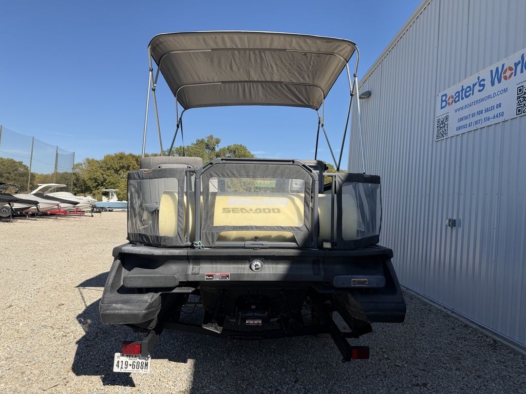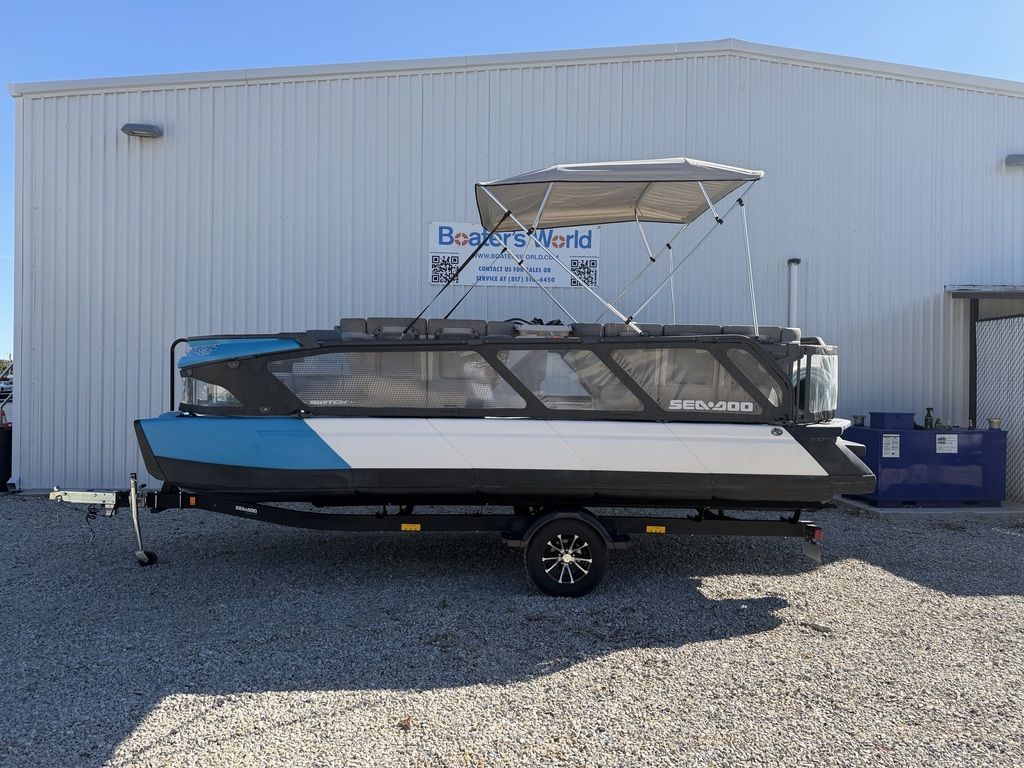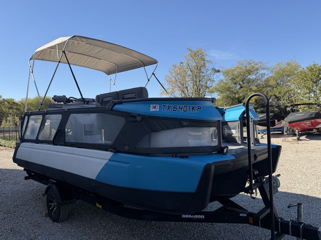 The Boat Stops HereExclusive to Sea-Doo®, iBR® is the first braking system on a pontoon. It stops the boat sooner and provides more control and maneuverability at low speeds and in reverse making docking and launching a breeze.