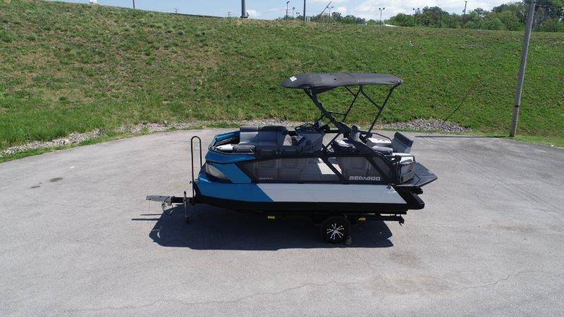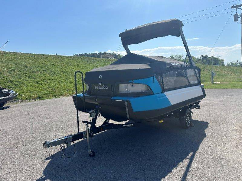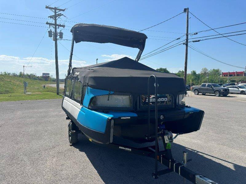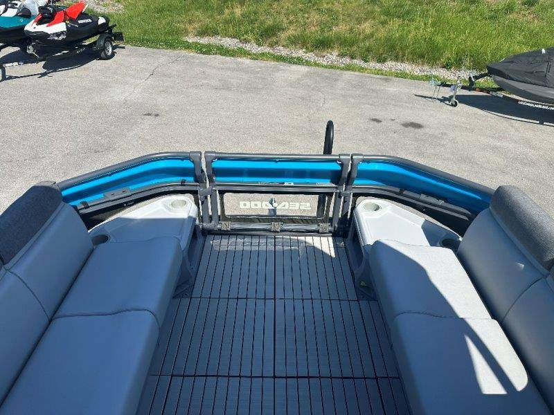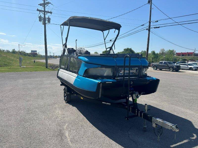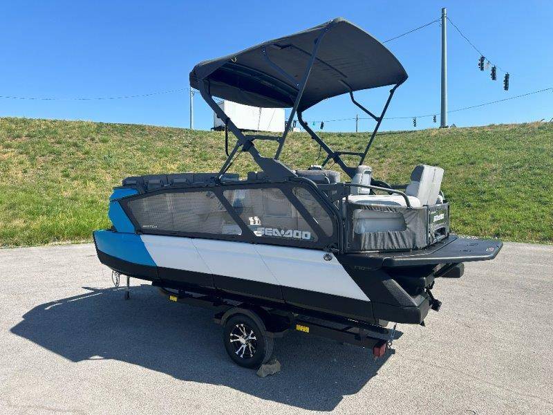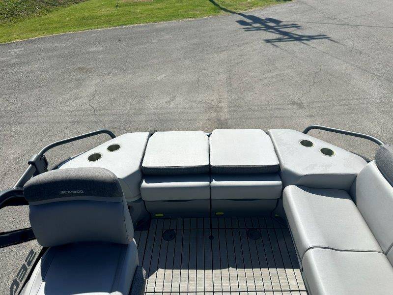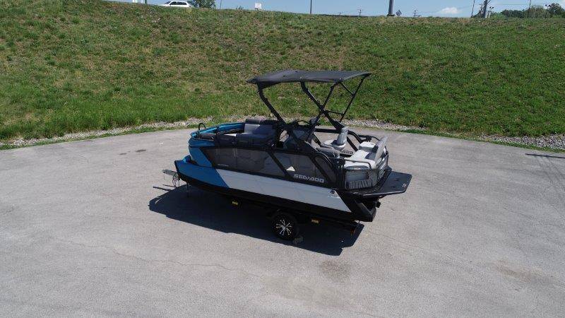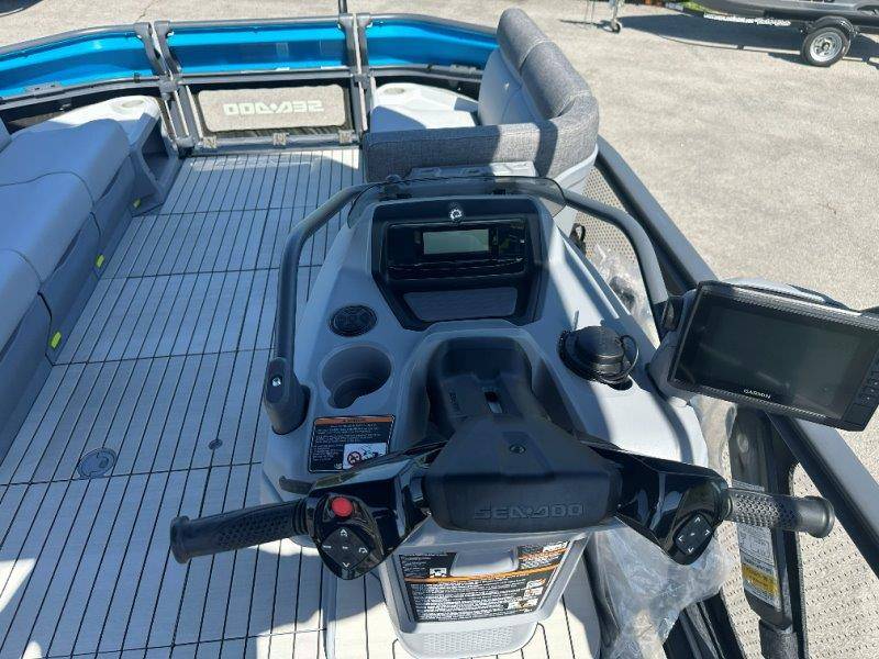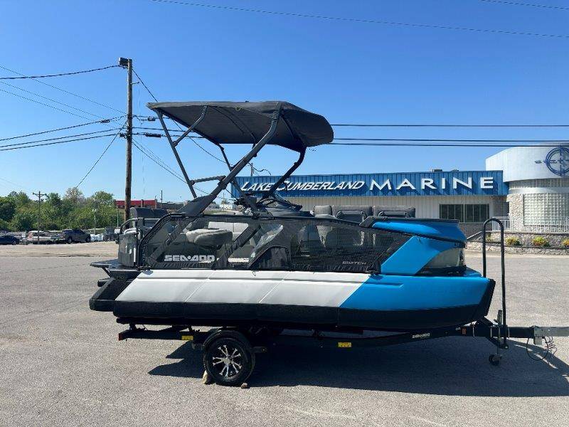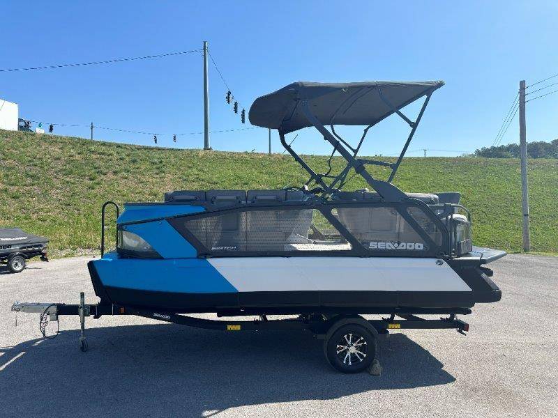 2022 Sea- Doo Switch Cruise 18' 170HP Engine & Performance Engine: Rotax 1630 ACE™ - 170 hp. Horsepower: 170 HP. Cooling: Closed-Loop Cooling System (CLCS). Fuel System: Naturally aspirated; 87 octane recommended. Top Speed: Approx. 37 mph (based on internal BRP testing). Capacity & Dimensions Maximum Person Capacity: 7 (US/Canada). Maximum Load Capacity: 1,135 lb (515 kg). Fuel Capacity: 29 US gal (109.7 L). Length: 17.4 ft (5.3 m). Dry Weight: 2,206 lb (1,001 kg). Key Features Intelligent Brake & Reverse (iBR): Standard brake and maneuverability system. Storage: 187 gal (708 L) total capacity. Helm: 4.5-inch digital display + 7-inch Garmin touchscreen GPS. Layout: Modular deck with LinQ attachment points. Extras: Bimini top, rearview mirror, and glove box with USB port