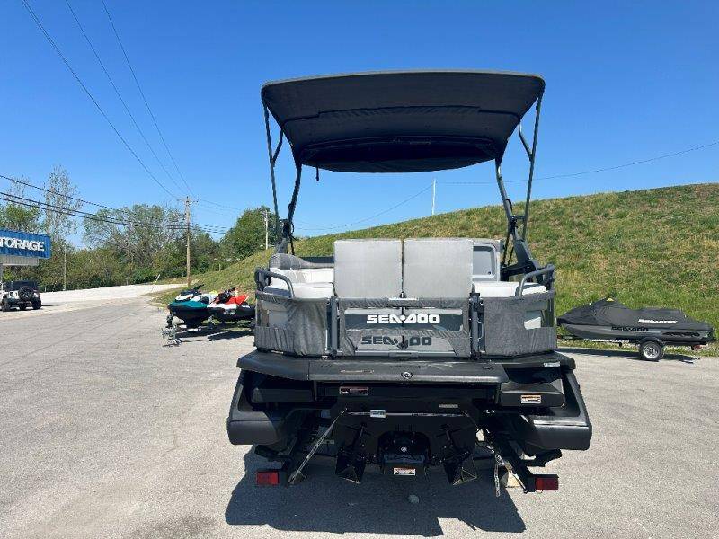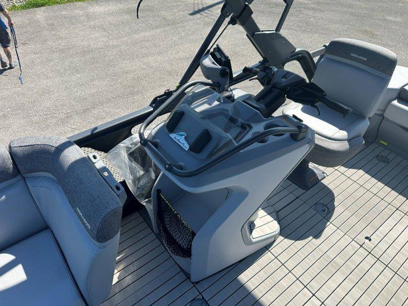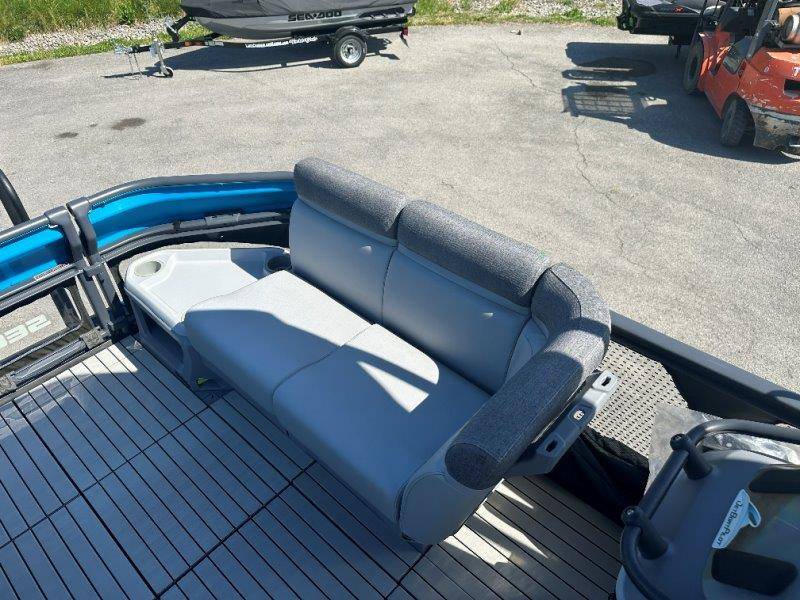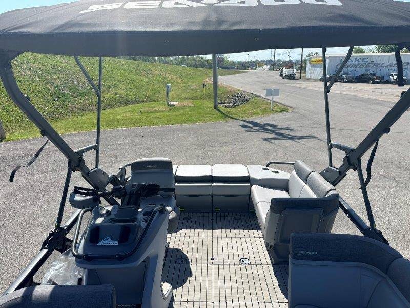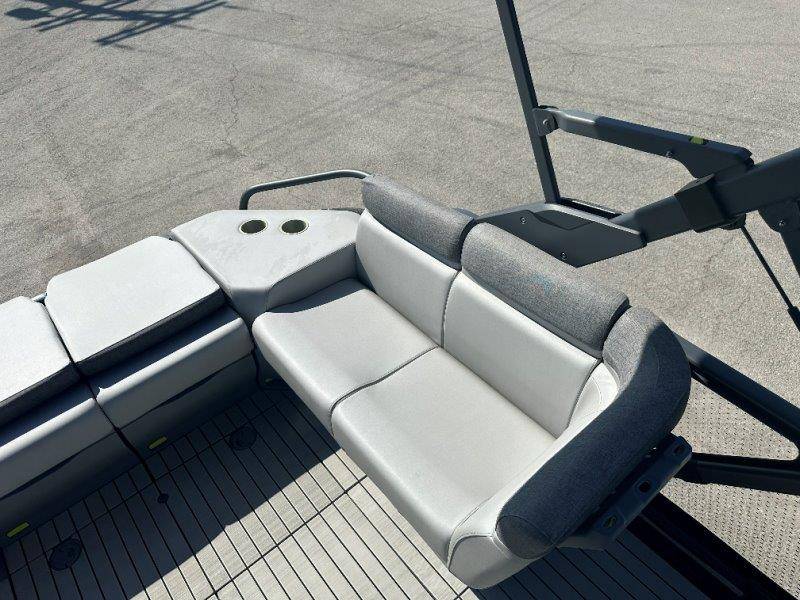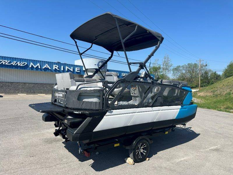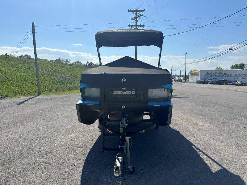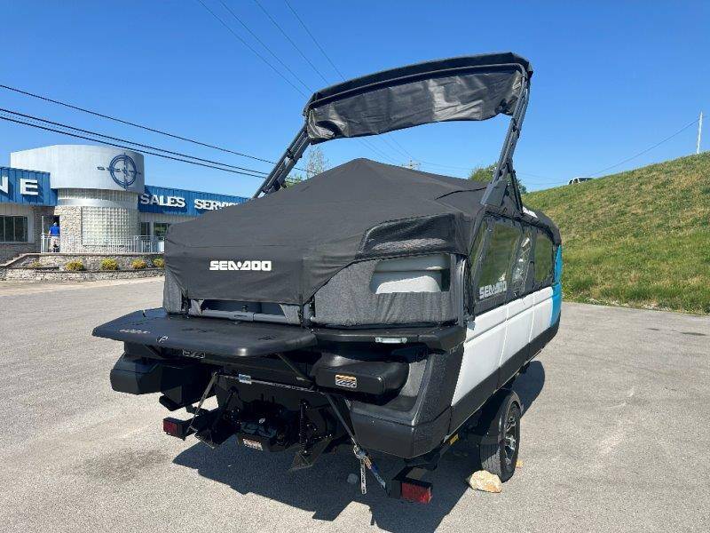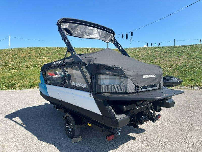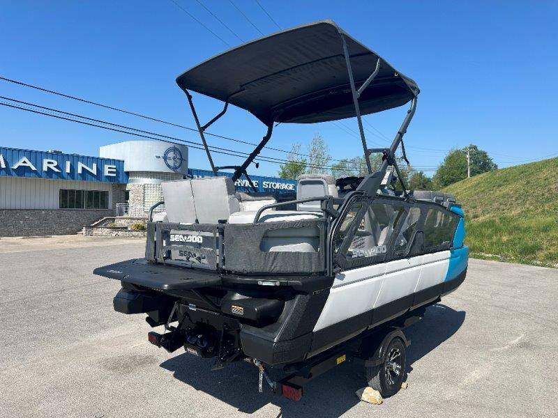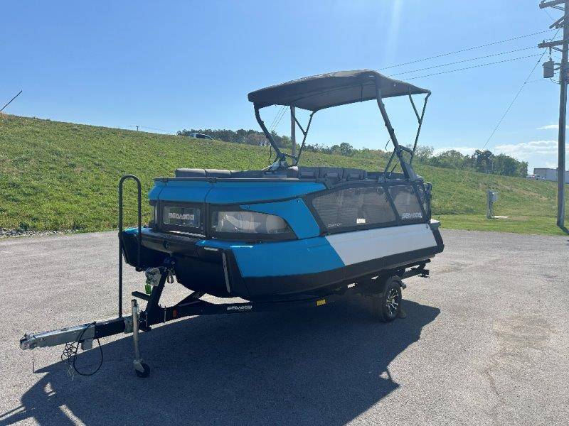 2022 Sea- Doo Switch Cruise 18' 170HP Engine & Performance Engine: Rotax 1630 ACE™ - 170 hp. Horsepower: 170 HP. Cooling: Closed-Loop Cooling System (CLCS). Fuel System: Naturally aspirated; 87 octane recommended. Top Speed: Approx. 37 mph (based on internal BRP testing). Capacity & Dimensions Maximum Person Capacity: 7 (US/Canada). Maximum Load Capacity: 1,135 lb (515 kg). Fuel Capacity: 29 US gal (109.7 L). Length: 17.4 ft (5.3 m). Dry Weight: 2,206 lb (1,001 kg). Key Features Intelligent Brake & Reverse (iBR): Standard brake and maneuverability system. Storage: 187 gal (708 L) total capacity. Helm: 4.5-inch digital display + 7-inch Garmin touchscreen GPS. Layout: Modular deck with LinQ attachment points. Extras: Bimini top, rearview mirror, and glove box with USB port