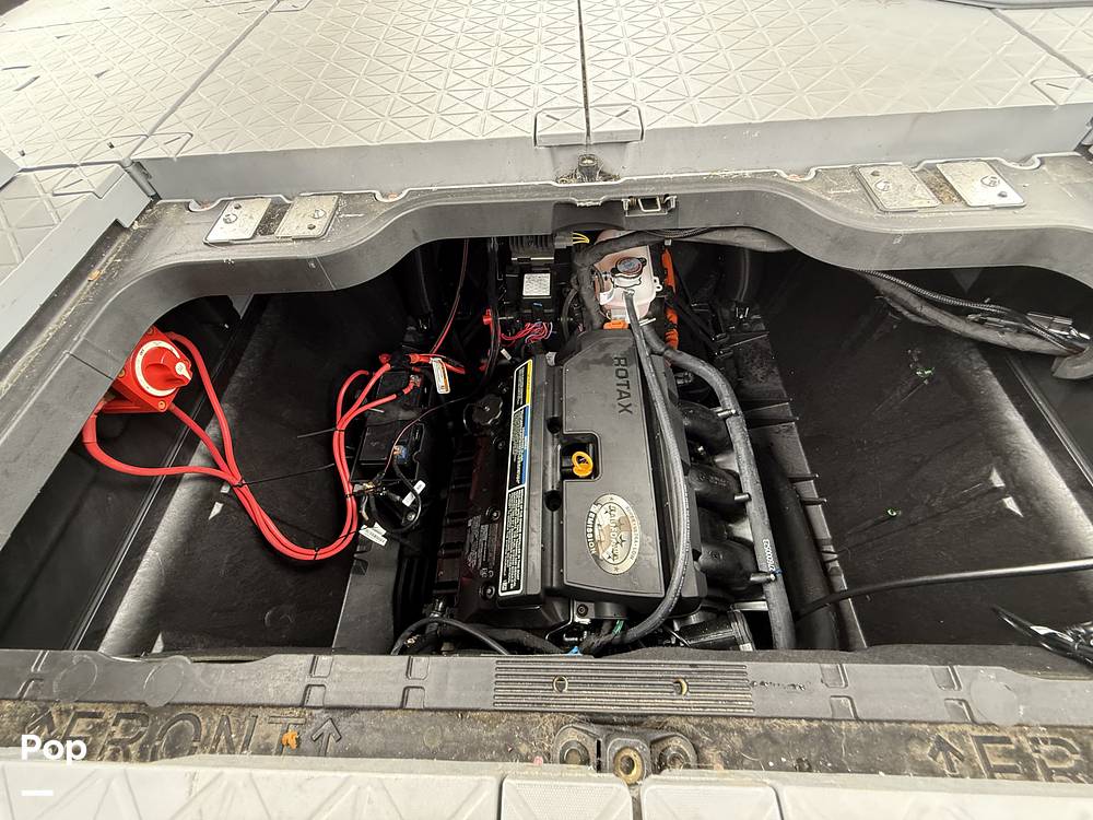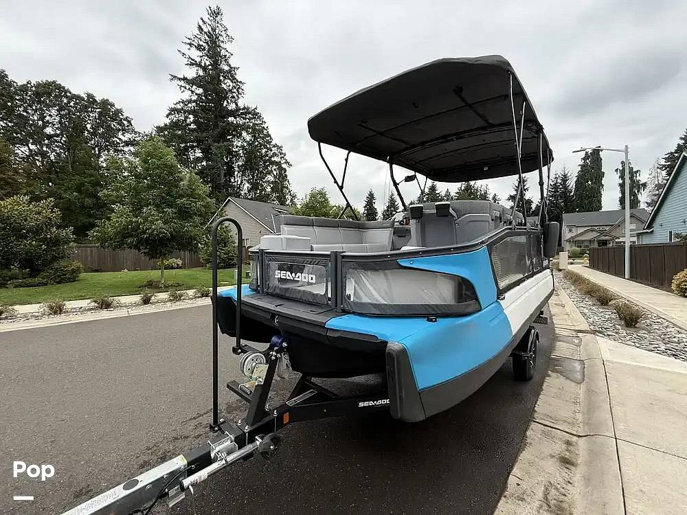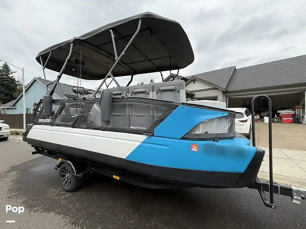 The 2022 Sea-Doo Switch Sport is powered by a 230hp Rotax inboard/outboard engine, designed for sharp turns and smooth cruising. It comes with a trailer, double Bimini for added shade, and has been stored under cover to maintain its condition.