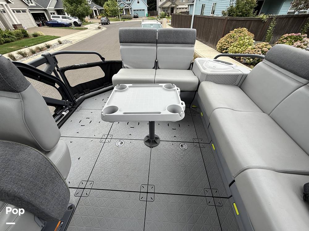 The layout is built for fun and flexibility--removable pedestal mounts, cup holders, and a lounge table give you options, while the swim platform, stern ladder, and ski tow hook bring the action. The flip-up bolster driver seat offers clear sightlines, and compartment storage keeps gear out of the way.
