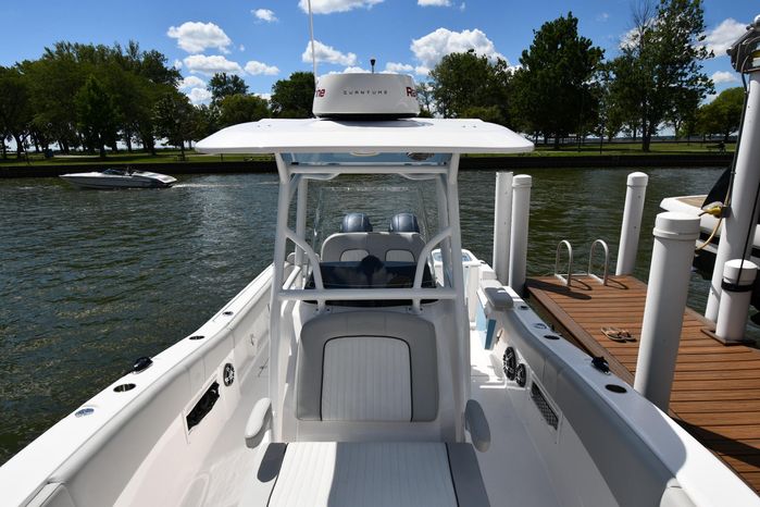 Freshwater / Great Lakes boat since new this vessel features Twin Yamaha 150-hp 4-Stroke Motors with only 105 original hours. Notable features include but are not limited to the following: Enclosed Head (Electric Flush) w/Vanity/Sink, Windlass Anchor w/Helm / Forward-Bow Controls (Note Polished Stainless-Steel Anchor, Transom Live Well, Port-Side Dive / Swim-Door, Fiberglass Hardtop w/Hull-Side Paint Match on Underside, Premium Raymarine NAV-System w/Duel Raymarine 9" Axium MFDs w/Radar/GPS/Chartplotter/Sounder, Premium Fusion Signature Series Sound System w/AMP/(2) Subwoofers - Note Tower-Speakers on Underside of Hardtop, and MUCH more!