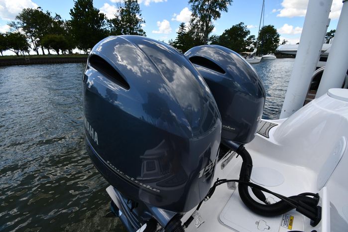Freshwater / Great Lakes boat since new this vessel features Twin Yamaha 150-hp 4-Stroke Motors with only 105 original hours. Notable features include but are not limited to the following: Enclosed Head (Electric Flush) w/Vanity/Sink, Windlass Anchor w/Helm / Forward-Bow Controls (Note Polished Stainless-Steel Anchor, Transom Live Well, Port-Side Dive / Swim-Door, Fiberglass Hardtop w/Hull-Side Paint Match on Underside, Premium Raymarine NAV-System w/Duel Raymarine 9" Axium MFDs w/Radar/GPS/Chartplotter/Sounder, Premium Fusion Signature Series Sound System w/AMP/(2) Subwoofers - Note Tower-Speakers on Underside of Hardtop, and MUCH more!