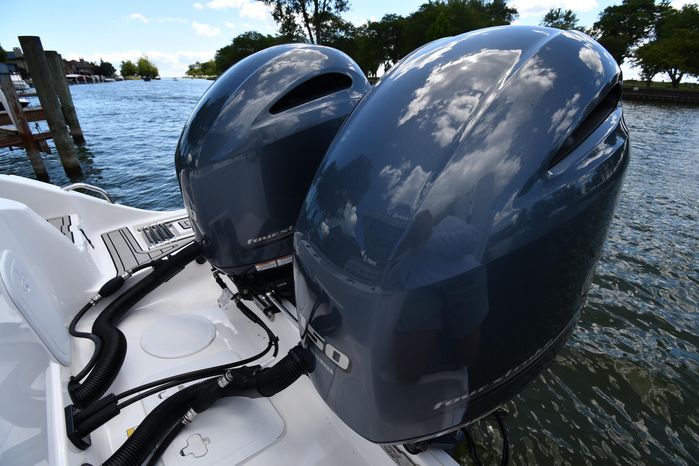 Freshwater / Great Lakes boat since new this vessel features Twin Yamaha 150-hp 4-Stroke Motors with only 105 original hours. Notable features include but are not limited to the following: Enclosed Head (Electric Flush) w/Vanity/Sink, Windlass Anchor w/Helm / Forward-Bow Controls (Note Polished Stainless-Steel Anchor, Transom Live Well, Port-Side Dive / Swim-Door, Fiberglass Hardtop w/Hull-Side Paint Match on Underside, Premium Raymarine NAV-System w/Duel Raymarine 9" Axium MFDs w/Radar/GPS/Chartplotter/Sounder, Premium Fusion Signature Series Sound System w/AMP/(2) Subwoofers - Note Tower-Speakers on Underside of Hardtop, and MUCH more!