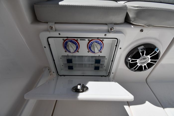 Freshwater / Great Lakes boat since new this vessel features Twin Yamaha 150-hp 4-Stroke Motors with only 105 original hours. Notable features include but are not limited to the following: Enclosed Head (Electric Flush) w/Vanity/Sink, Windlass Anchor w/Helm / Forward-Bow Controls (Note Polished Stainless-Steel Anchor, Transom Live Well, Port-Side Dive / Swim-Door, Fiberglass Hardtop w/Hull-Side Paint Match on Underside, Premium Raymarine NAV-System w/Duel Raymarine 9" Axium MFDs w/Radar/GPS/Chartplotter/Sounder, Premium Fusion Signature Series Sound System w/AMP/(2) Subwoofers - Note Tower-Speakers on Underside of Hardtop, and MUCH more!