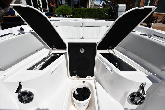 Freshwater / Great Lakes boat since new this vessel features Twin Yamaha 150-hp 4-Stroke Motors with only 105 original hours. Notable features include but are not limited to the following: Enclosed Head (Electric Flush) w/Vanity/Sink, Windlass Anchor w/Helm / Forward-Bow Controls (Note Polished Stainless-Steel Anchor, Transom Live Well, Port-Side Dive / Swim-Door, Fiberglass Hardtop w/Hull-Side Paint Match on Underside, Premium Raymarine NAV-System w/Duel Raymarine 9" Axium MFDs w/Radar/GPS/Chartplotter/Sounder, Premium Fusion Signature Series Sound System w/AMP/(2) Subwoofers - Note Tower-Speakers on Underside of Hardtop, and MUCH more!