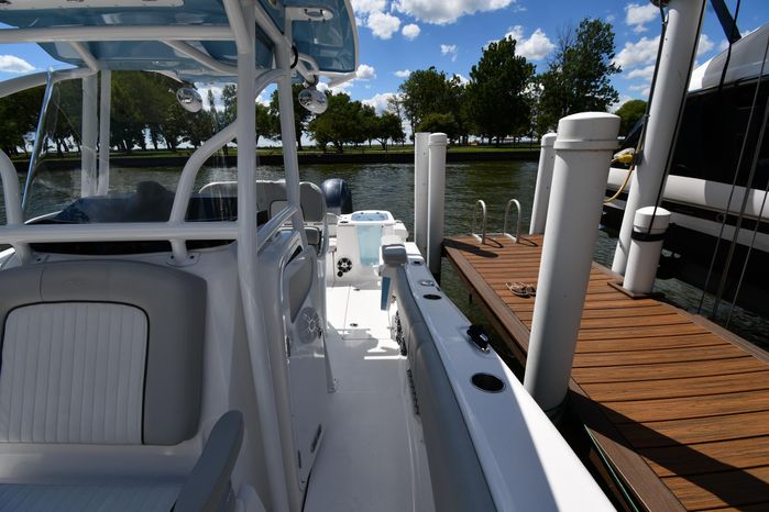Freshwater / Great Lakes boat since new this vessel features Twin Yamaha 150-hp 4-Stroke Motors with only 105 original hours. Notable features include but are not limited to the following: Enclosed Head (Electric Flush) w/Vanity/Sink, Windlass Anchor w/Helm / Forward-Bow Controls (Note Polished Stainless-Steel Anchor, Transom Live Well, Port-Side Dive / Swim-Door, Fiberglass Hardtop w/Hull-Side Paint Match on Underside, Premium Raymarine NAV-System w/Duel Raymarine 9" Axium MFDs w/Radar/GPS/Chartplotter/Sounder, Premium Fusion Signature Series Sound System w/AMP/(2) Subwoofers - Note Tower-Speakers on Underside of Hardtop, and MUCH more!