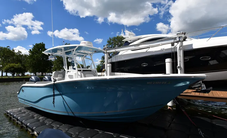 Freshwater / Great Lakes boat since new this vessel features Twin Yamaha 150-hp 4-Stroke Motors with only 105 original hours. Notable features include but are not limited to the following: Enclosed Head (Electric Flush) w/Vanity/Sink, Windlass Anchor w/Helm / Forward-Bow Controls (Note Polished Stainless-Steel Anchor, Transom Live Well, Port-Side Dive / Swim-Door, Fiberglass Hardtop w/Hull-Side Paint Match on Underside, Premium Raymarine NAV-System w/Duel Raymarine 9" Axium MFDs w/Radar/GPS/Chartplotter/Sounder, Premium Fusion Signature Series Sound System w/AMP/(2) Subwoofers - Note Tower-Speakers on Underside of Hardtop, and MUCH more!