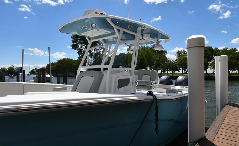 Freshwater / Great Lakes boat since new this vessel features Twin Yamaha 150-hp 4-Stroke Motors with only 105 original hours. Notable features include but are not limited to the following: Enclosed Head (Electric Flush) w/Vanity/Sink, Windlass Anchor w/Helm / Forward-Bow Controls (Note Polished Stainless-Steel Anchor, Transom Live Well, Port-Side Dive / Swim-Door, Fiberglass Hardtop w/Hull-Side Paint Match on Underside, Premium Raymarine NAV-System w/Duel Raymarine 9" Axium MFDs w/Radar/GPS/Chartplotter/Sounder, Premium Fusion Signature Series Sound System w/AMP/(2) Subwoofers - Note Tower-Speakers on Underside of Hardtop, and MUCH more!