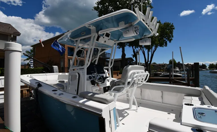 Freshwater / Great Lakes boat since new this vessel features Twin Yamaha 150-hp 4-Stroke Motors with only 105 original hours. Notable features include but are not limited to the following: Enclosed Head (Electric Flush) w/Vanity/Sink, Windlass Anchor w/Helm / Forward-Bow Controls (Note Polished Stainless-Steel Anchor, Transom Live Well, Port-Side Dive / Swim-Door, Fiberglass Hardtop w/Hull-Side Paint Match on Underside, Premium Raymarine NAV-System w/Duel Raymarine 9" Axium MFDs w/Radar/GPS/Chartplotter/Sounder, Premium Fusion Signature Series Sound System w/AMP/(2) Subwoofers - Note Tower-Speakers on Underside of Hardtop, and MUCH more!