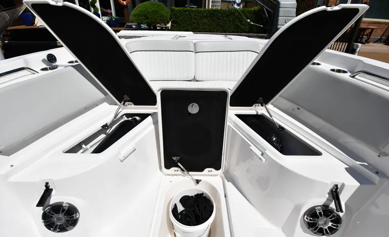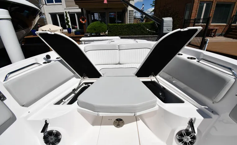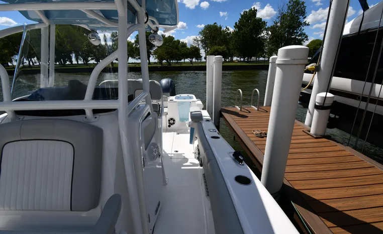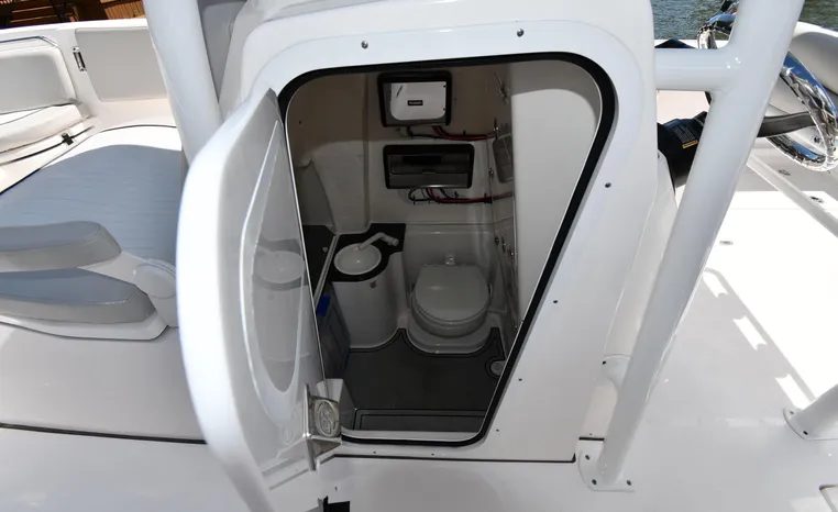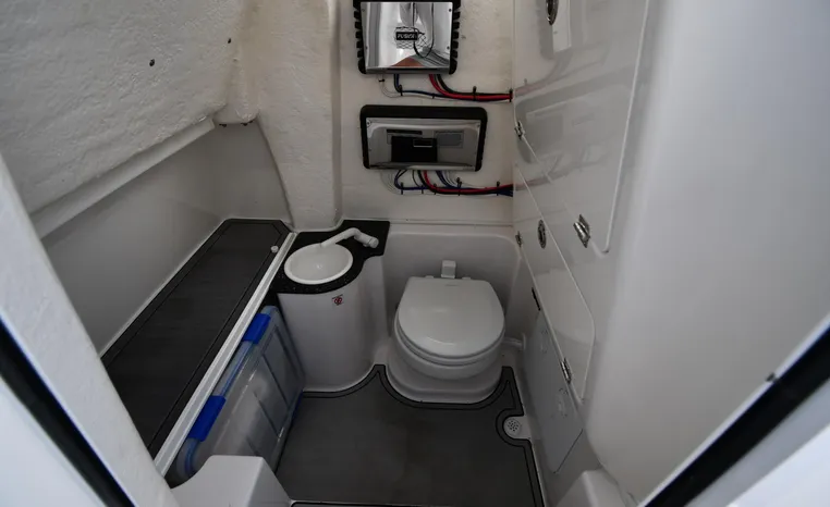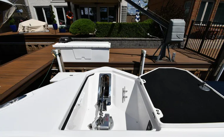 Broker Notes: Kept out of water when not in use. 100-hr service complete August 2025. Powder-Coat Package, Pre-Rigged w/Extra Battery, Bow-Table w/Cushion, Head w/Holding-Tank. Laporte Storage Cover. Impeccably clean and highly recommended by listing agent!
