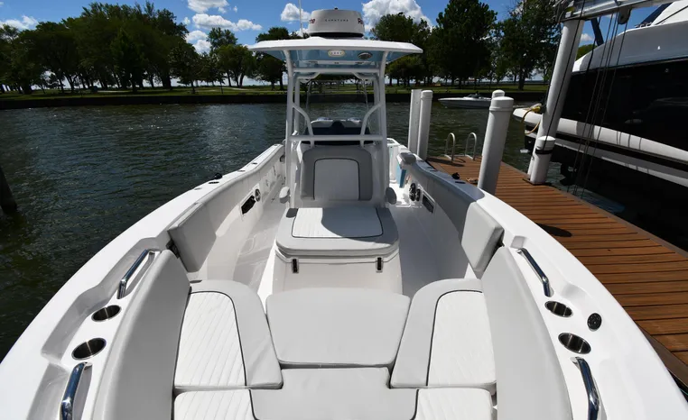 Freshwater / Great Lakes boat since new this vessel features Twin Yamaha 150-hp 4-Stroke Motors with only 105 original hours. Notable features include but are not limited to the following: Enclosed Head (Electric Flush) w/Vanity/Sink, Windlass Anchor w/Helm / Forward-Bow Controls (Note Polished Stainless-Steel Anchor, Transom Live Well, Port-Side Dive / Swim-Door, Fiberglass Hardtop w/Hull-Side Paint Match on Underside, Premium Raymarine NAV-System w/Duel Raymarine 9" Axium MFDs w/Radar/GPS/Chartplotter/Sounder, Premium Fusion Signature Series Sound System w/AMP/(2) Subwoofers - Note Tower-Speakers on Underside of Hardtop, and MUCH more!