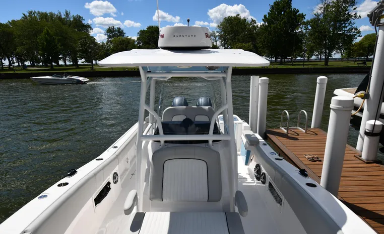 Freshwater / Great Lakes boat since new this vessel features Twin Yamaha 150-hp 4-Stroke Motors with only 105 original hours. Notable features include but are not limited to the following: Enclosed Head (Electric Flush) w/Vanity/Sink, Windlass Anchor w/Helm / Forward-Bow Controls (Note Polished Stainless-Steel Anchor, Transom Live Well, Port-Side Dive / Swim-Door, Fiberglass Hardtop w/Hull-Side Paint Match on Underside, Premium Raymarine NAV-System w/Duel Raymarine 9" Axium MFDs w/Radar/GPS/Chartplotter/Sounder, Premium Fusion Signature Series Sound System w/AMP/(2) Subwoofers - Note Tower-Speakers on Underside of Hardtop, and MUCH more!