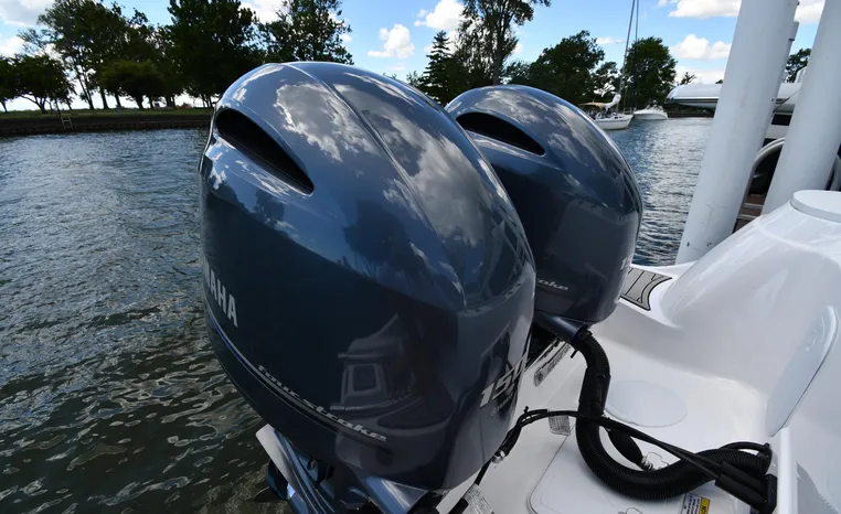 Freshwater / Great Lakes boat since new this vessel features Twin Yamaha 150-hp 4-Stroke Motors with only 105 original hours. Notable features include but are not limited to the following: Enclosed Head (Electric Flush) w/Vanity/Sink, Windlass Anchor w/Helm / Forward-Bow Controls (Note Polished Stainless-Steel Anchor, Transom Live Well, Port-Side Dive / Swim-Door, Fiberglass Hardtop w/Hull-Side Paint Match on Underside, Premium Raymarine NAV-System w/Duel Raymarine 9" Axium MFDs w/Radar/GPS/Chartplotter/Sounder, Premium Fusion Signature Series Sound System w/AMP/(2) Subwoofers - Note Tower-Speakers on Underside of Hardtop, and MUCH more!