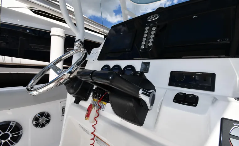 Freshwater / Great Lakes boat since new this vessel features Twin Yamaha 150-hp 4-Stroke Motors with only 105 original hours. Notable features include but are not limited to the following: Enclosed Head (Electric Flush) w/Vanity/Sink, Windlass Anchor w/Helm / Forward-Bow Controls (Note Polished Stainless-Steel Anchor, Transom Live Well, Port-Side Dive / Swim-Door, Fiberglass Hardtop w/Hull-Side Paint Match on Underside, Premium Raymarine NAV-System w/Duel Raymarine 9" Axium MFDs w/Radar/GPS/Chartplotter/Sounder, Premium Fusion Signature Series Sound System w/AMP/(2) Subwoofers - Note Tower-Speakers on Underside of Hardtop, and MUCH more!