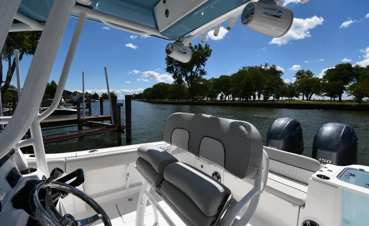 Freshwater / Great Lakes boat since new this vessel features Twin Yamaha 150-hp 4-Stroke Motors with only 105 original hours. Notable features include but are not limited to the following: Enclosed Head (Electric Flush) w/Vanity/Sink, Windlass Anchor w/Helm / Forward-Bow Controls (Note Polished Stainless-Steel Anchor, Transom Live Well, Port-Side Dive / Swim-Door, Fiberglass Hardtop w/Hull-Side Paint Match on Underside, Premium Raymarine NAV-System w/Duel Raymarine 9" Axium MFDs w/Radar/GPS/Chartplotter/Sounder, Premium Fusion Signature Series Sound System w/AMP/(2) Subwoofers - Note Tower-Speakers on Underside of Hardtop, and MUCH more!