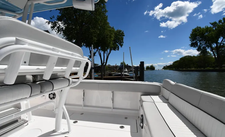 Freshwater / Great Lakes boat since new this vessel features Twin Yamaha 150-hp 4-Stroke Motors with only 105 original hours. Notable features include but are not limited to the following: Enclosed Head (Electric Flush) w/Vanity/Sink, Windlass Anchor w/Helm / Forward-Bow Controls (Note Polished Stainless-Steel Anchor, Transom Live Well, Port-Side Dive / Swim-Door, Fiberglass Hardtop w/Hull-Side Paint Match on Underside, Premium Raymarine NAV-System w/Duel Raymarine 9" Axium MFDs w/Radar/GPS/Chartplotter/Sounder, Premium Fusion Signature Series Sound System w/AMP/(2) Subwoofers - Note Tower-Speakers on Underside of Hardtop, and MUCH more!