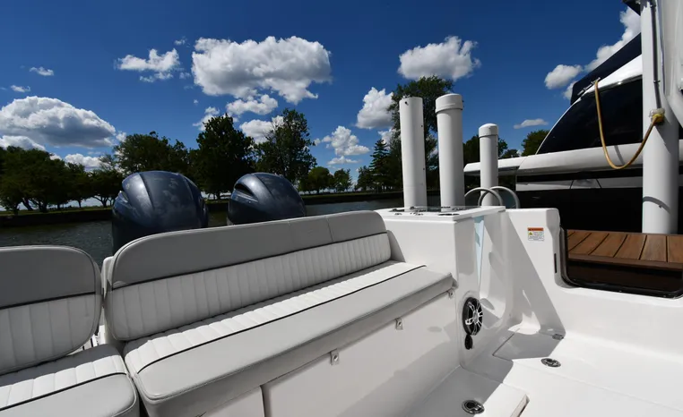 Freshwater / Great Lakes boat since new this vessel features Twin Yamaha 150-hp 4-Stroke Motors with only 105 original hours. Notable features include but are not limited to the following: Enclosed Head (Electric Flush) w/Vanity/Sink, Windlass Anchor w/Helm / Forward-Bow Controls (Note Polished Stainless-Steel Anchor, Transom Live Well, Port-Side Dive / Swim-Door, Fiberglass Hardtop w/Hull-Side Paint Match on Underside, Premium Raymarine NAV-System w/Duel Raymarine 9" Axium MFDs w/Radar/GPS/Chartplotter/Sounder, Premium Fusion Signature Series Sound System w/AMP/(2) Subwoofers - Note Tower-Speakers on Underside of Hardtop, and MUCH more!