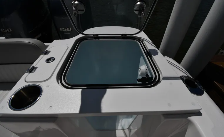 Freshwater / Great Lakes boat since new this vessel features Twin Yamaha 150-hp 4-Stroke Motors with only 105 original hours. Notable features include but are not limited to the following: Enclosed Head (Electric Flush) w/Vanity/Sink, Windlass Anchor w/Helm / Forward-Bow Controls (Note Polished Stainless-Steel Anchor, Transom Live Well, Port-Side Dive / Swim-Door, Fiberglass Hardtop w/Hull-Side Paint Match on Underside, Premium Raymarine NAV-System w/Duel Raymarine 9" Axium MFDs w/Radar/GPS/Chartplotter/Sounder, Premium Fusion Signature Series Sound System w/AMP/(2) Subwoofers - Note Tower-Speakers on Underside of Hardtop, and MUCH more!