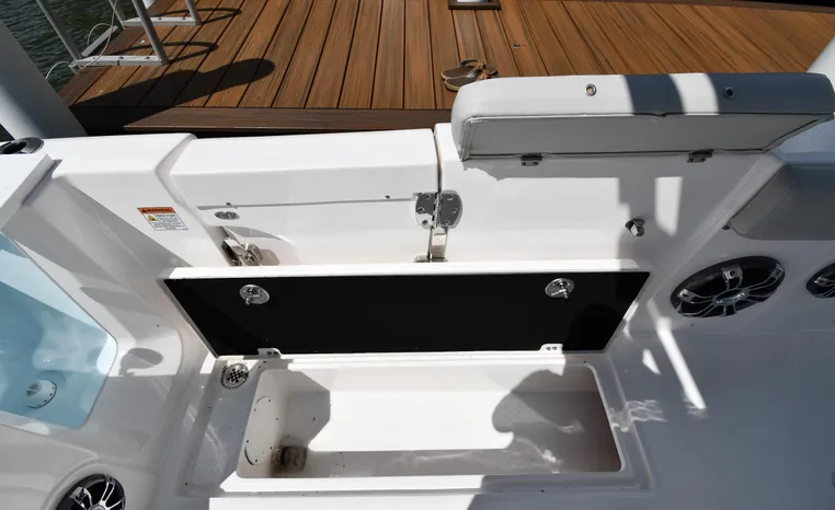 Freshwater / Great Lakes boat since new this vessel features Twin Yamaha 150-hp 4-Stroke Motors with only 105 original hours. Notable features include but are not limited to the following: Enclosed Head (Electric Flush) w/Vanity/Sink, Windlass Anchor w/Helm / Forward-Bow Controls (Note Polished Stainless-Steel Anchor, Transom Live Well, Port-Side Dive / Swim-Door, Fiberglass Hardtop w/Hull-Side Paint Match on Underside, Premium Raymarine NAV-System w/Duel Raymarine 9" Axium MFDs w/Radar/GPS/Chartplotter/Sounder, Premium Fusion Signature Series Sound System w/AMP/(2) Subwoofers - Note Tower-Speakers on Underside of Hardtop, and MUCH more!